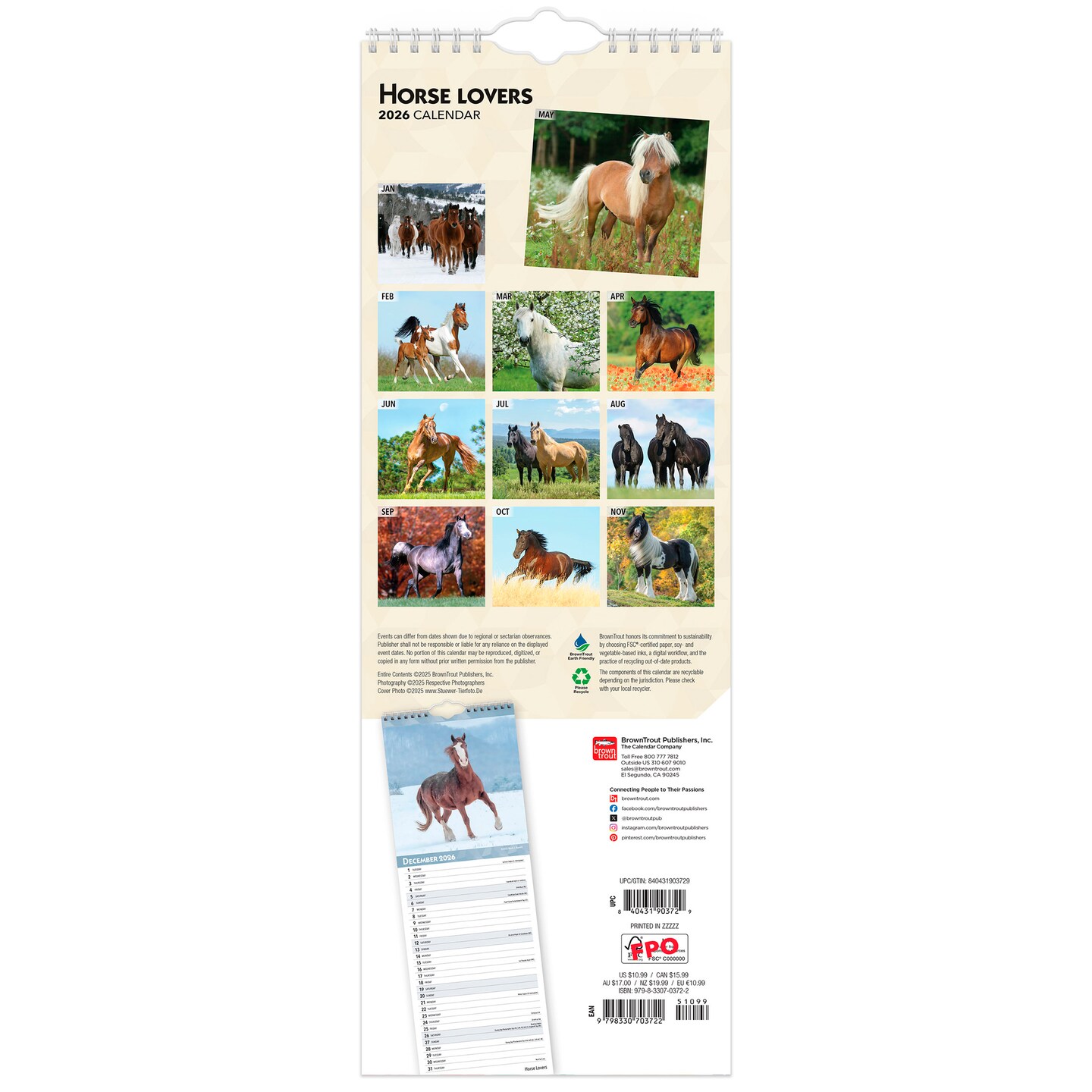 Horse Lovers | 2026  5.7 x 16.5 Inch (Hanging) Monthly Slimline Wall Calendar