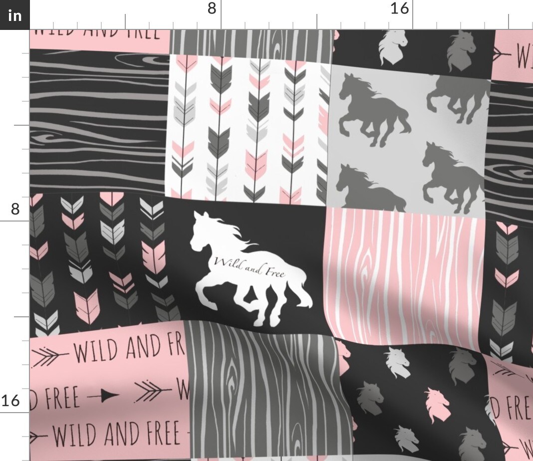Horse Patchwork Pink Black Wild Free Horses Western Cowgirl Custom Printed Fabric by Spoonflower Various Fabrics by the Yard or Fat Quarter
