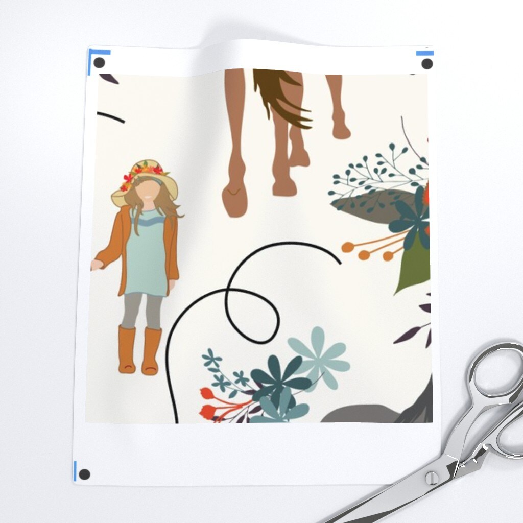 Horses Girls Black Horse Racing Kids Flowers Children Equestrian Custom Printed Fabric by Spoonflower Various Fabrics by the Yard or Fat Quarter