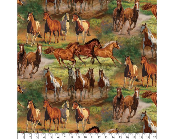 Horses in the Meadow Digital Cotton Print Fabric | By the Yard | Sewing and Crafting | 44 inches wide