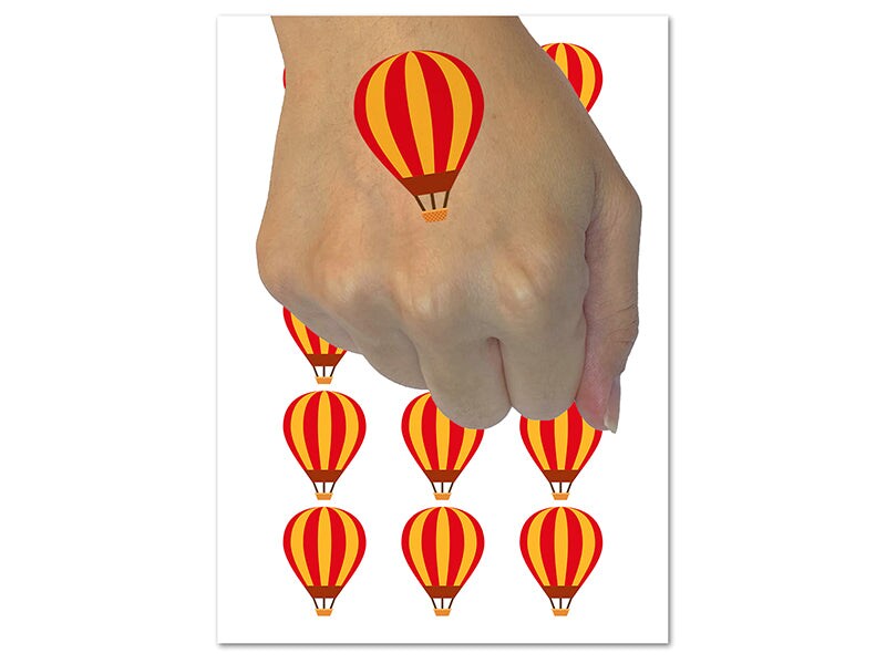Hot Air Balloon Solid Temporary Tattoo Water Resistant Fake Body Art Set Collection (1 Sheet)