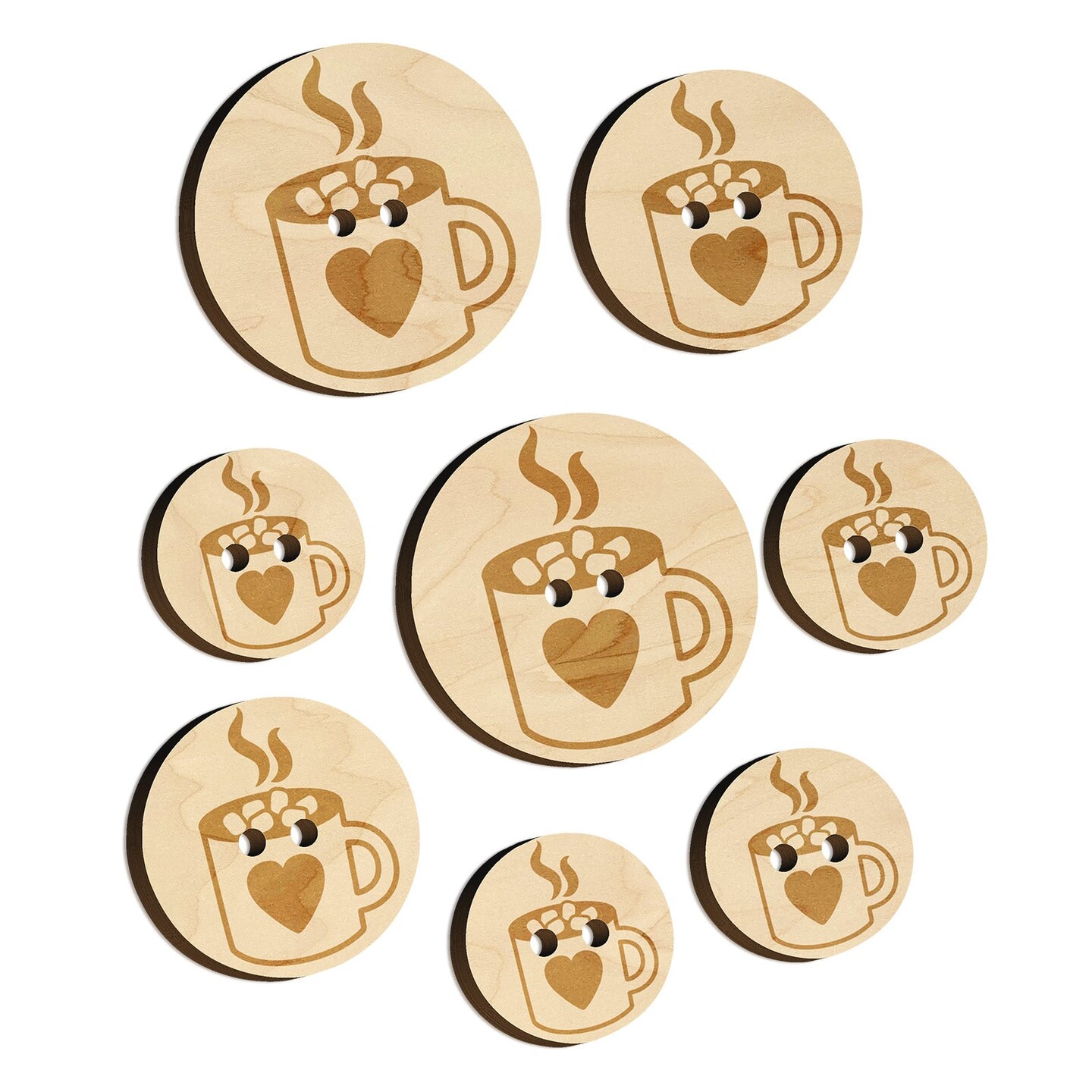 Hot Chocolate with Marshmallows Heart Mug Wood Buttons for Sewing Knitting Crochet DIY Craft