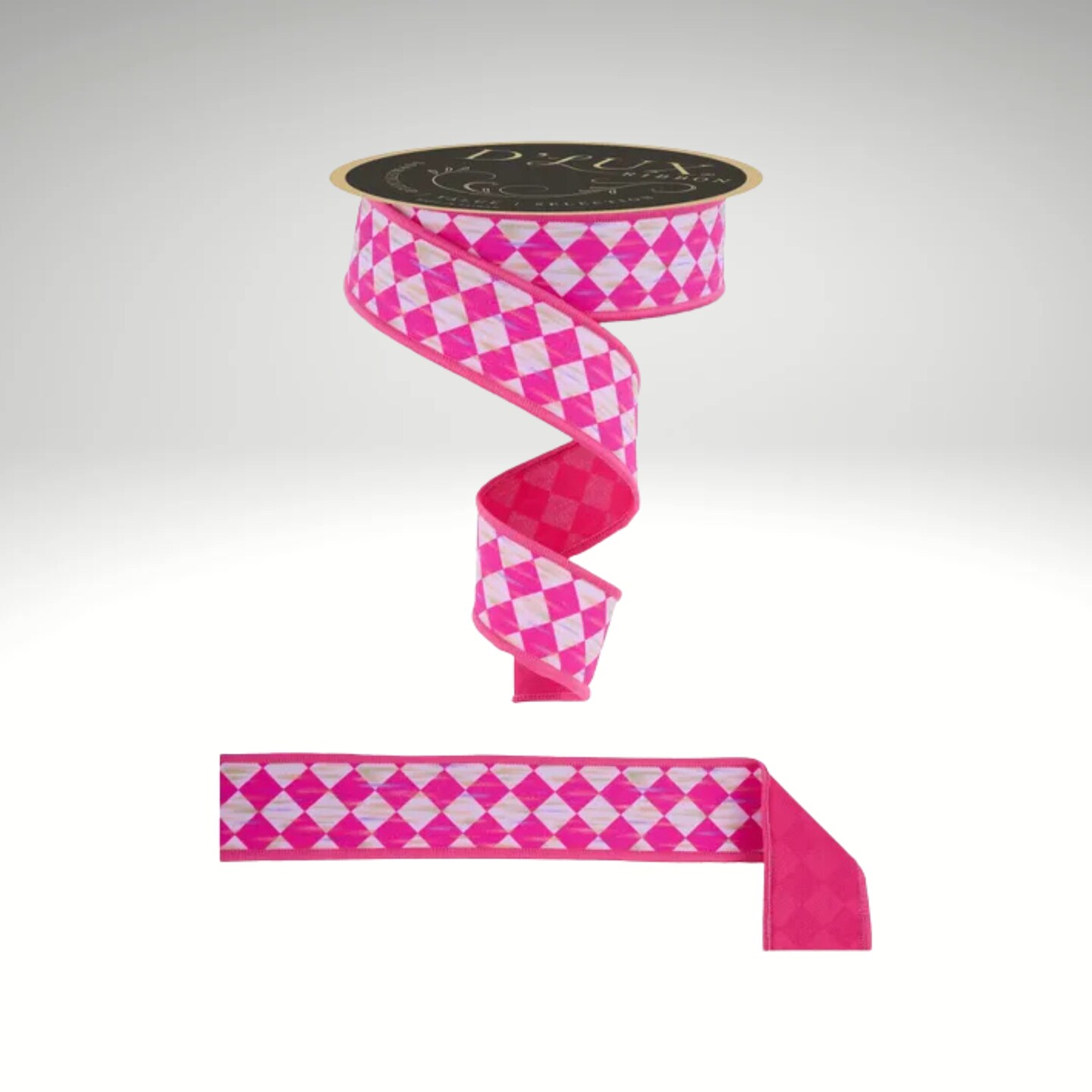 Hot Pink Antique Diamond Ribbon – 1.5x10yd Wired Spring Craft Ribbon-LX312911