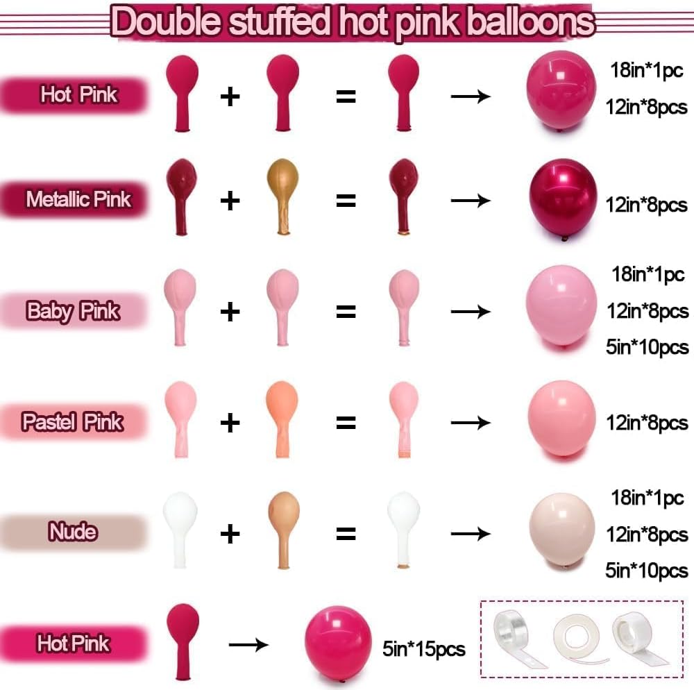 Hot Pink Balloon Garland - Double Stuffed Latex Light Pink Nude Balloons Arch Different Sizes for Birthday Wedding Baby Shower Butterfly Girls Party Bridal Shower Bachelorette Decorations