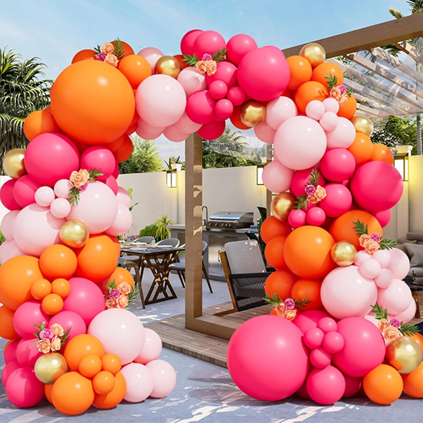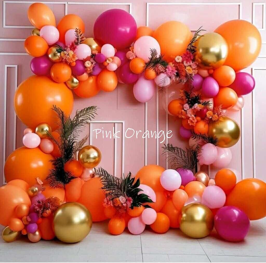 Hot Pink Orange Metallic Gold Tropical Latex Balloons(Pink Orange)10 x 8 x 0.65 inches