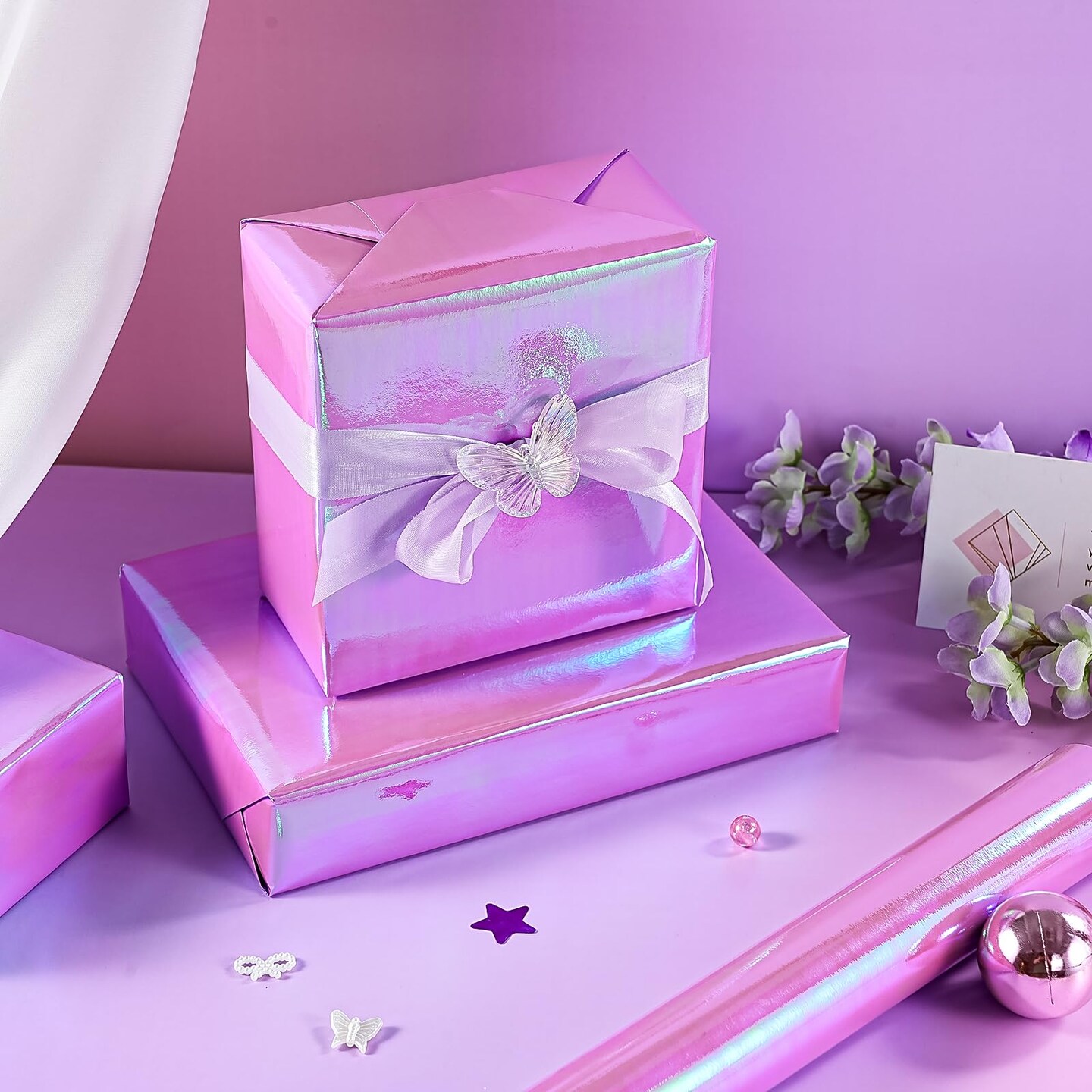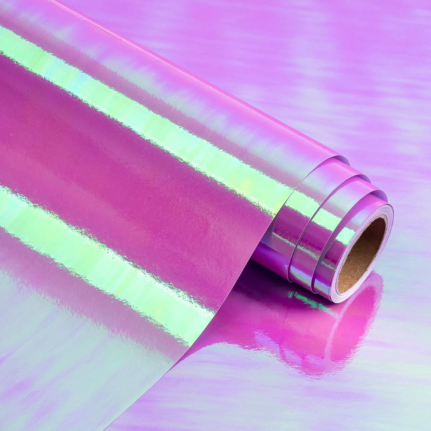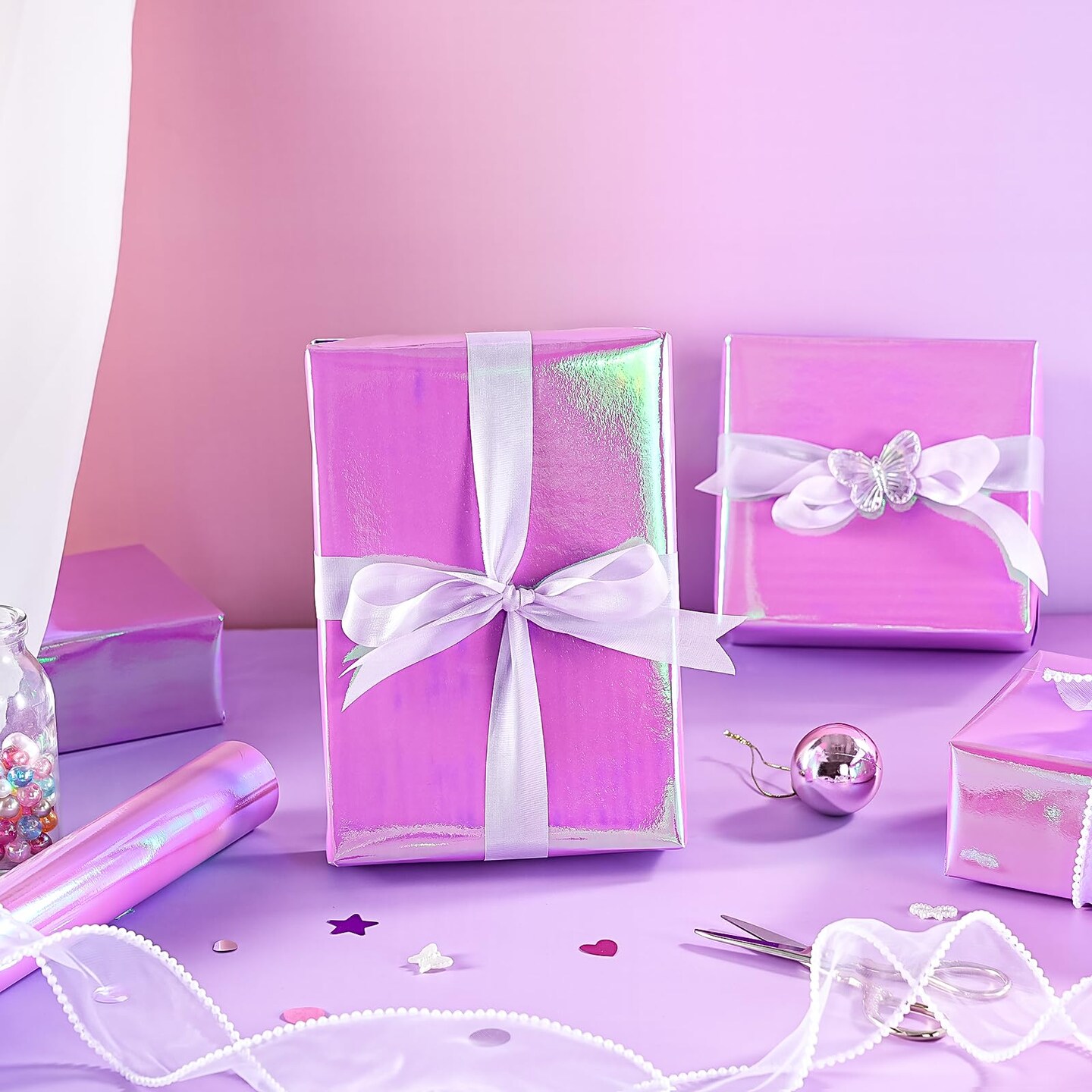 Hot Pink Wrapping Paper - Mini Roll - 17 inch x 16.5 feet - Holographic Iridescent Wrapping Paper for Birthday, Wedding, Baby Shower, Bridal Shower, Valentine's Day, Mother's Day