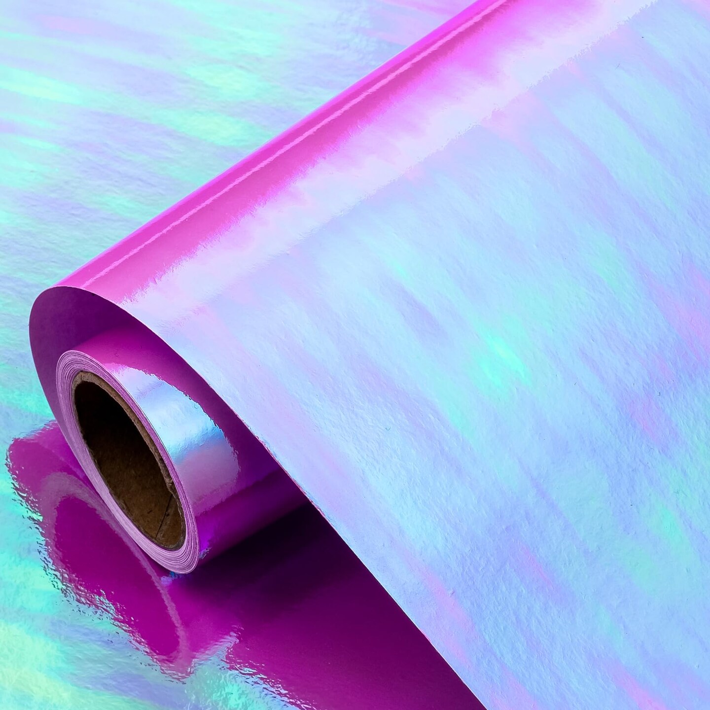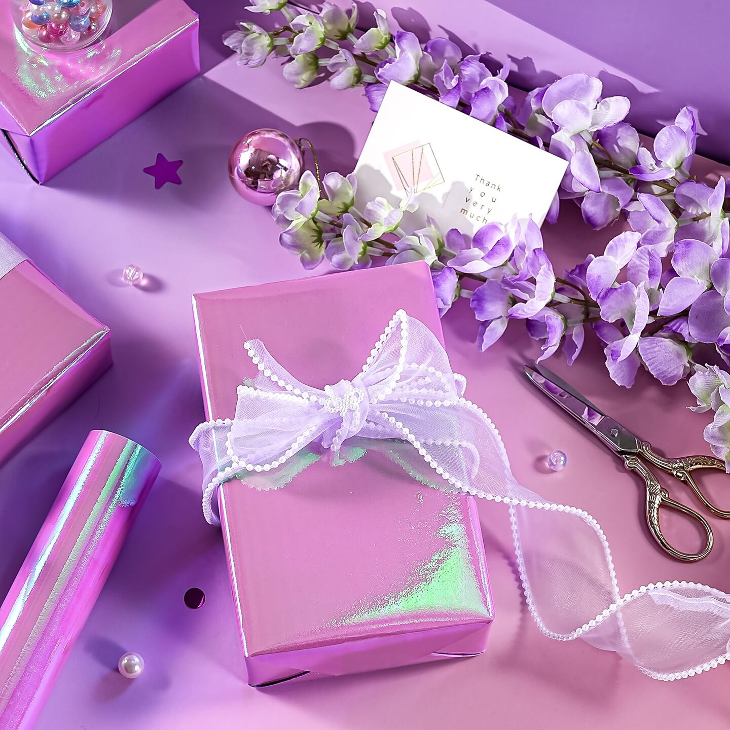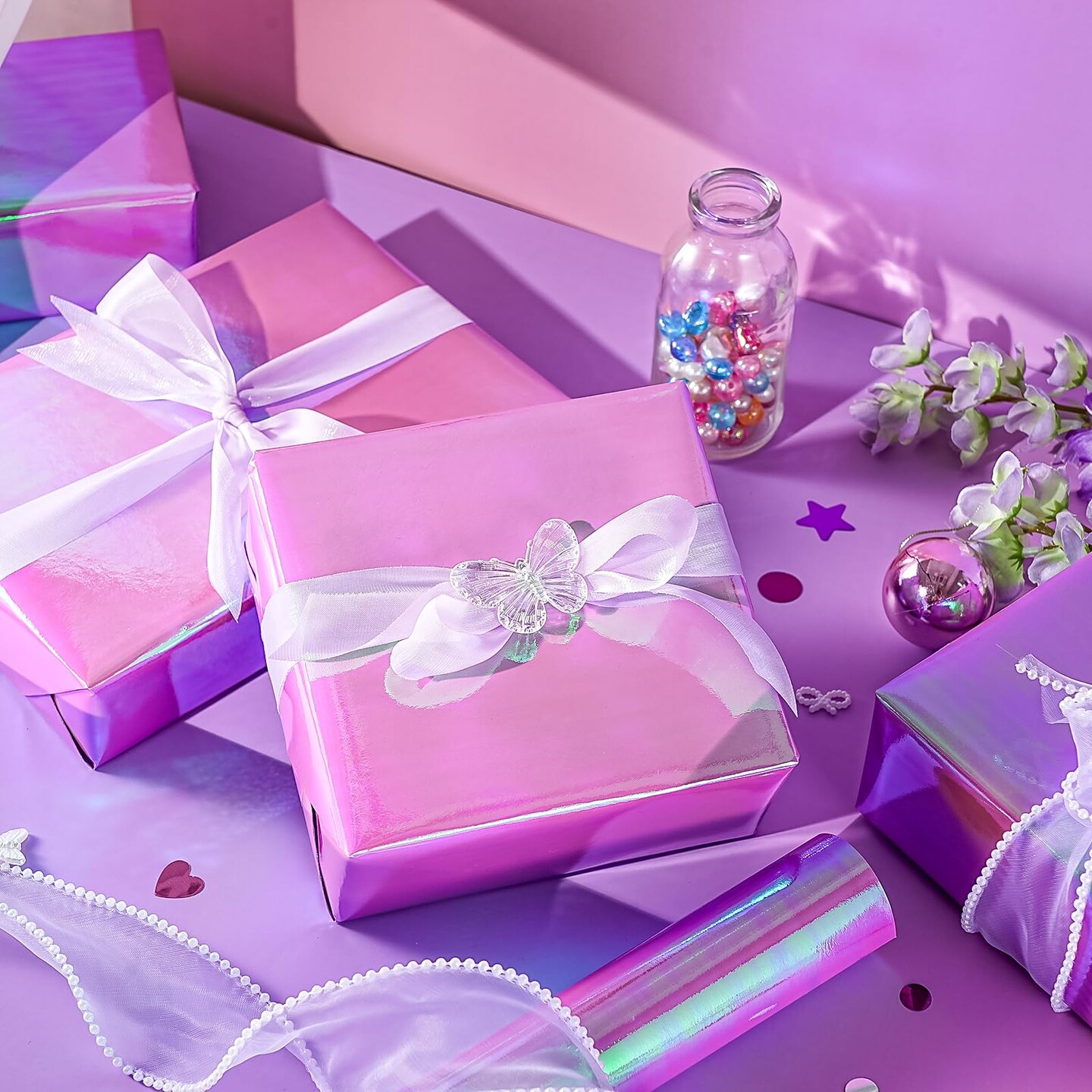 Hot Pink Wrapping Paper - Mini Roll - 17 inch x 16.5 feet - Holographic Iridescent Wrapping Paper for Birthday, Wedding, Baby Shower, Bridal Shower, Valentine's Day, Mother's Day