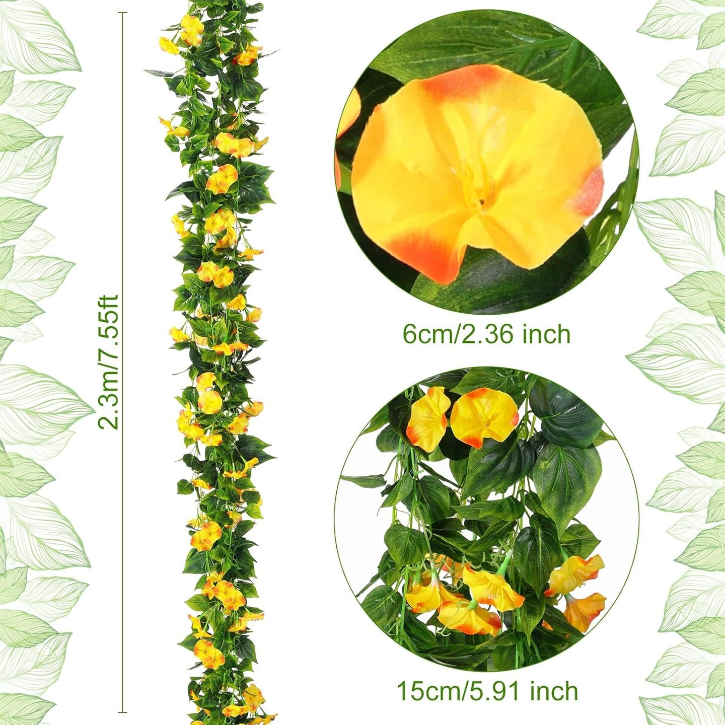 Hotop 6-Pack 7.55 ft Artificial Morning Glory Vines – Faux Silk Hanging Flowers for Indoor & Outdoor Décor, Wall, Fence, Wedding, Banquet, and Party Decorations (Yellow)