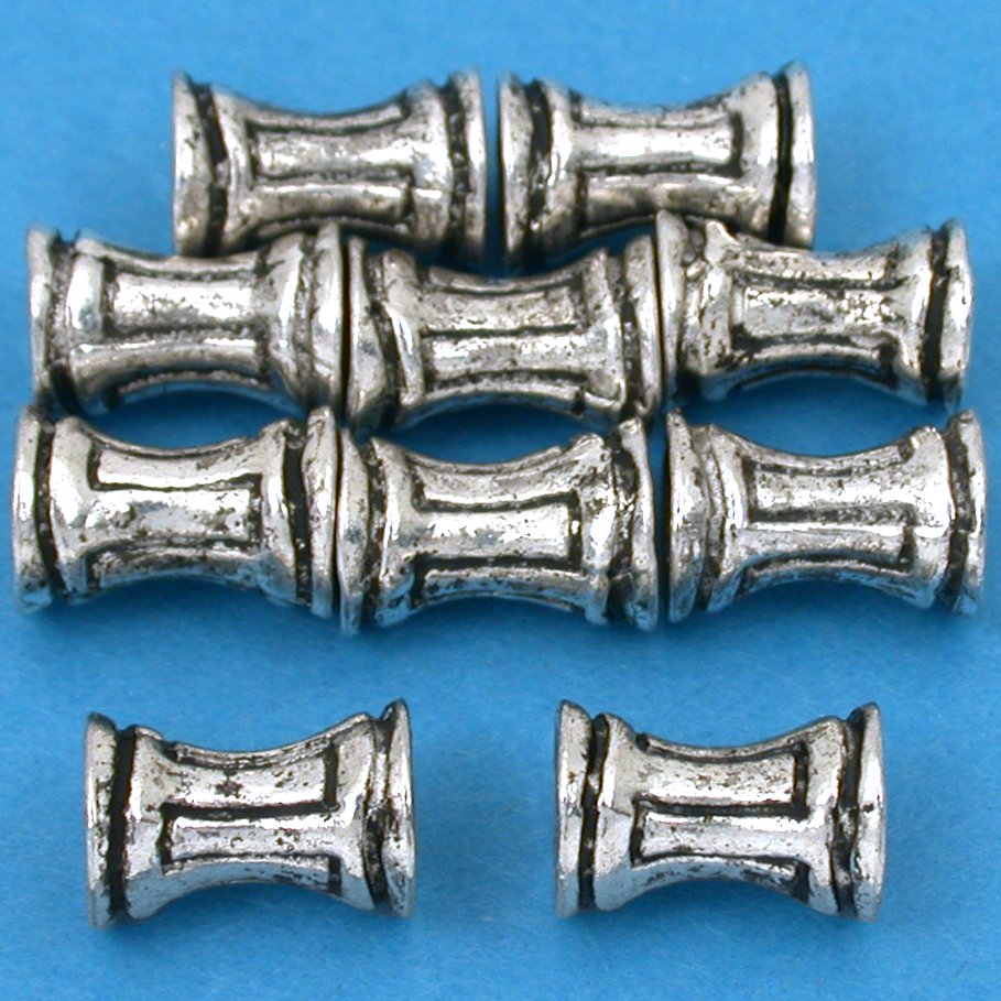 Hourglass Tube Beads Antique Silver Plt 11mm Approx 10