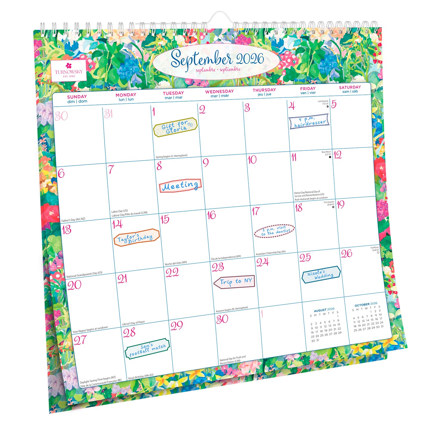 House of Turnowsky OFFICIAL | 2026 12 x 12 Inch (Hanging) Monthly Square Wire-O Calendar | Sticker Sheet