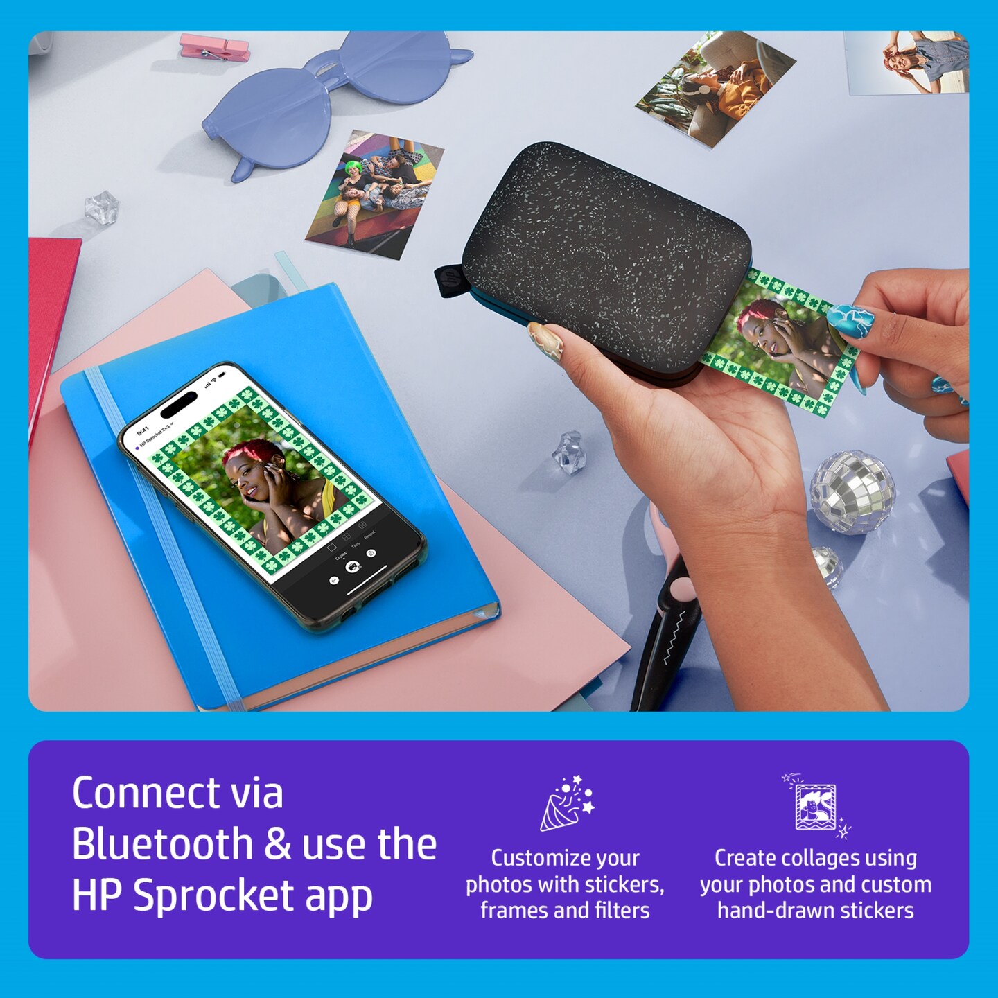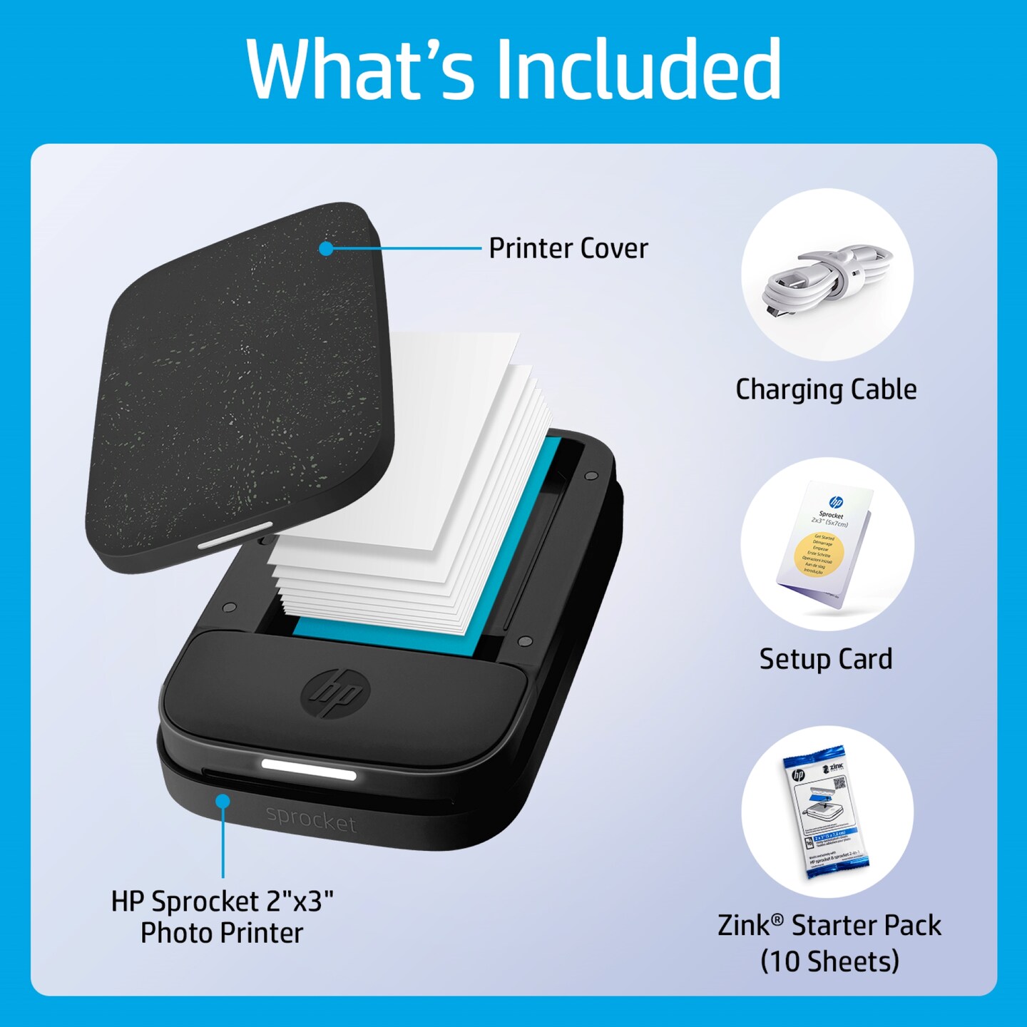 HP Sprocket Portable Printer, Zink Sticky Paper 2x3" Instant Photo Printer for iOS & Android Device