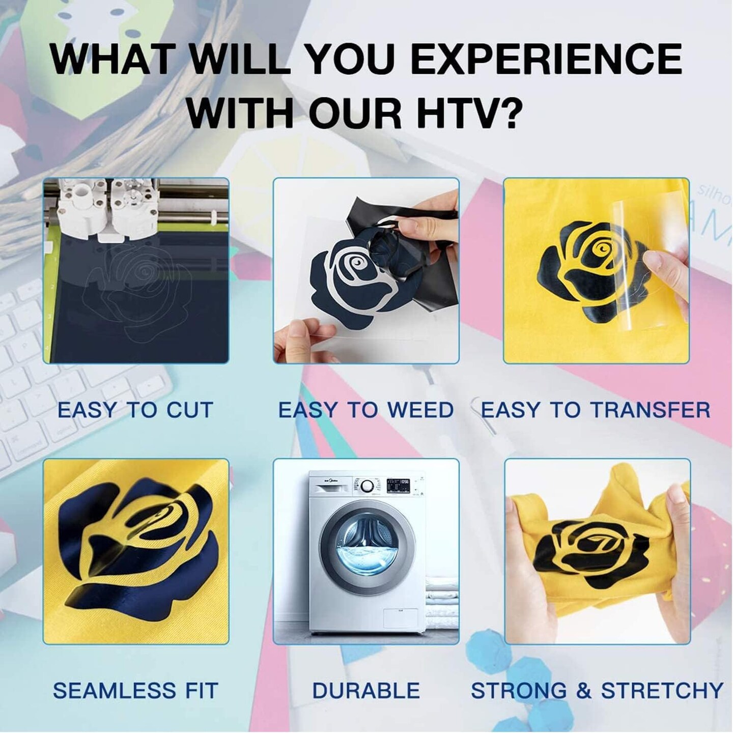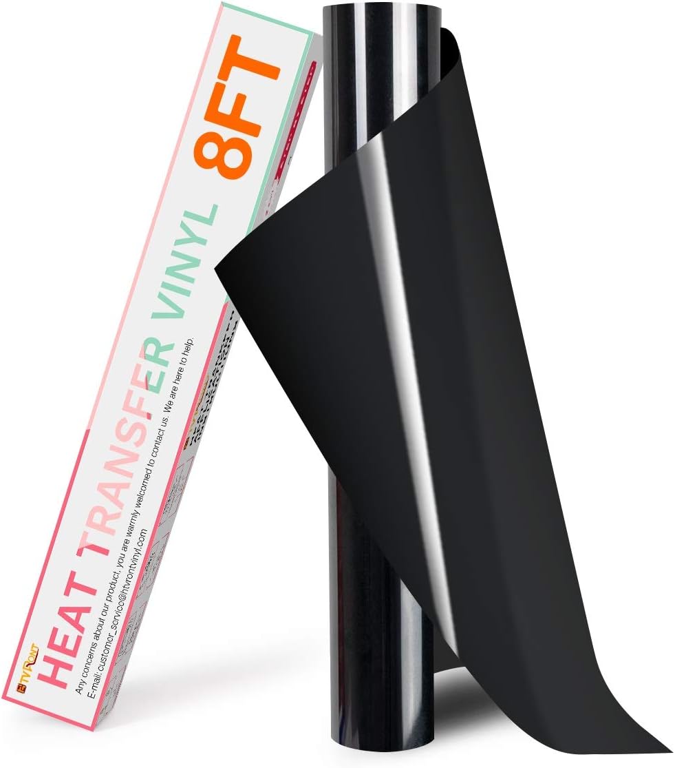 HTV Vinyl Rolls Heat Transfer Vinyl - 12" x 8ft Black HTV Vinyl for Shirts