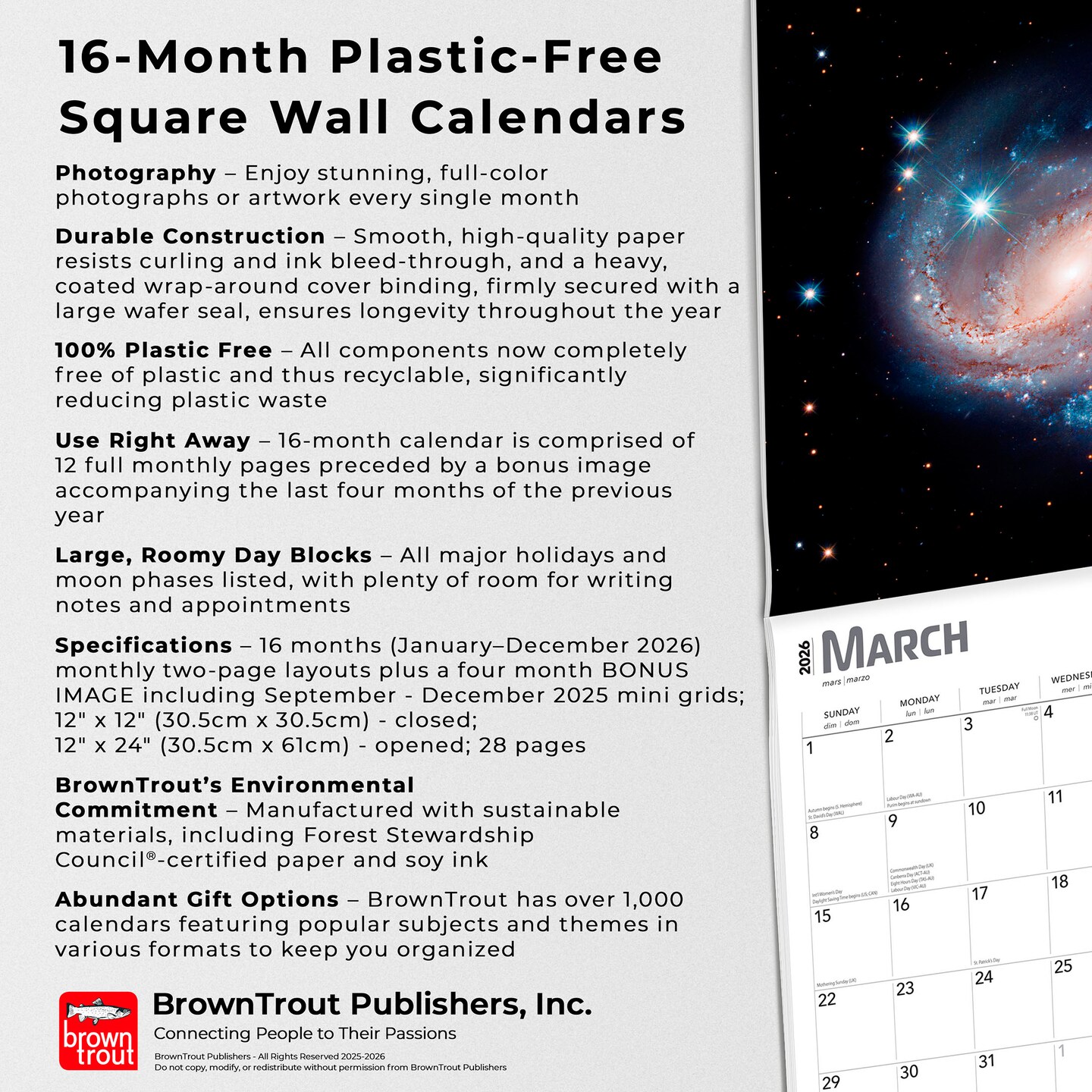 Hubble Space Telescope | 2026 12 x 24 Inch (Hanging) Monthly Square Wall Calendar | Foil Stamped Cover | Plastic-Free | BrownTrout | Science Astronomy Technology