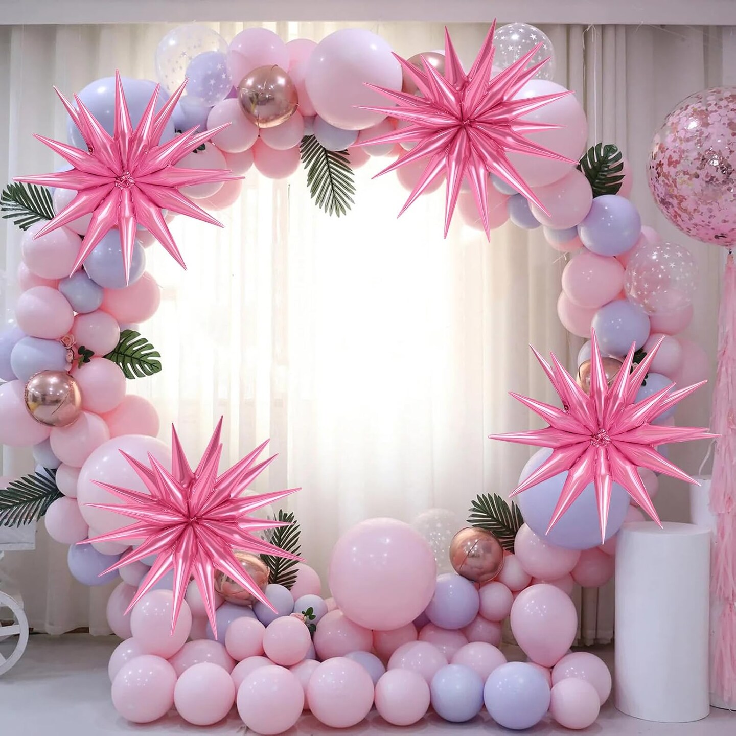 Huge Pink Explosion Star Aluminum Foil Spike Balloons for Birthday(Pink)
