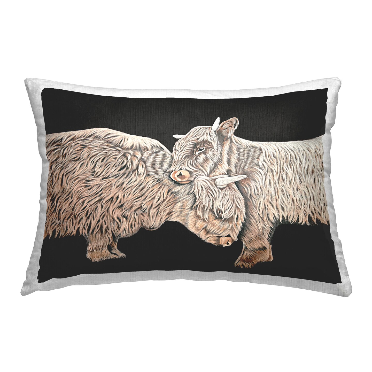 Hugging Cattle on Black Decorative Printed Throw Pillow Design by Ashley Justice, 14 x 7 x 20