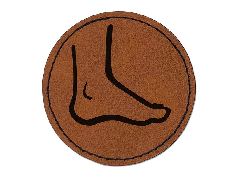 Human Foot Feet Anatomy Body Part Round Iron-On Engraved Faux Leather Patch Applique - 2.5"
