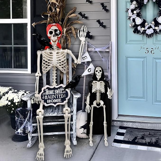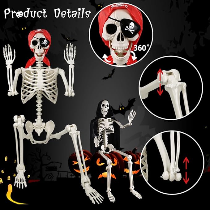 Human Skeleton,Halloween Full Body Posable Human Skeleton Bones Decorations with Movable Joints for Indoor Outdoor Halloween Props Decorations