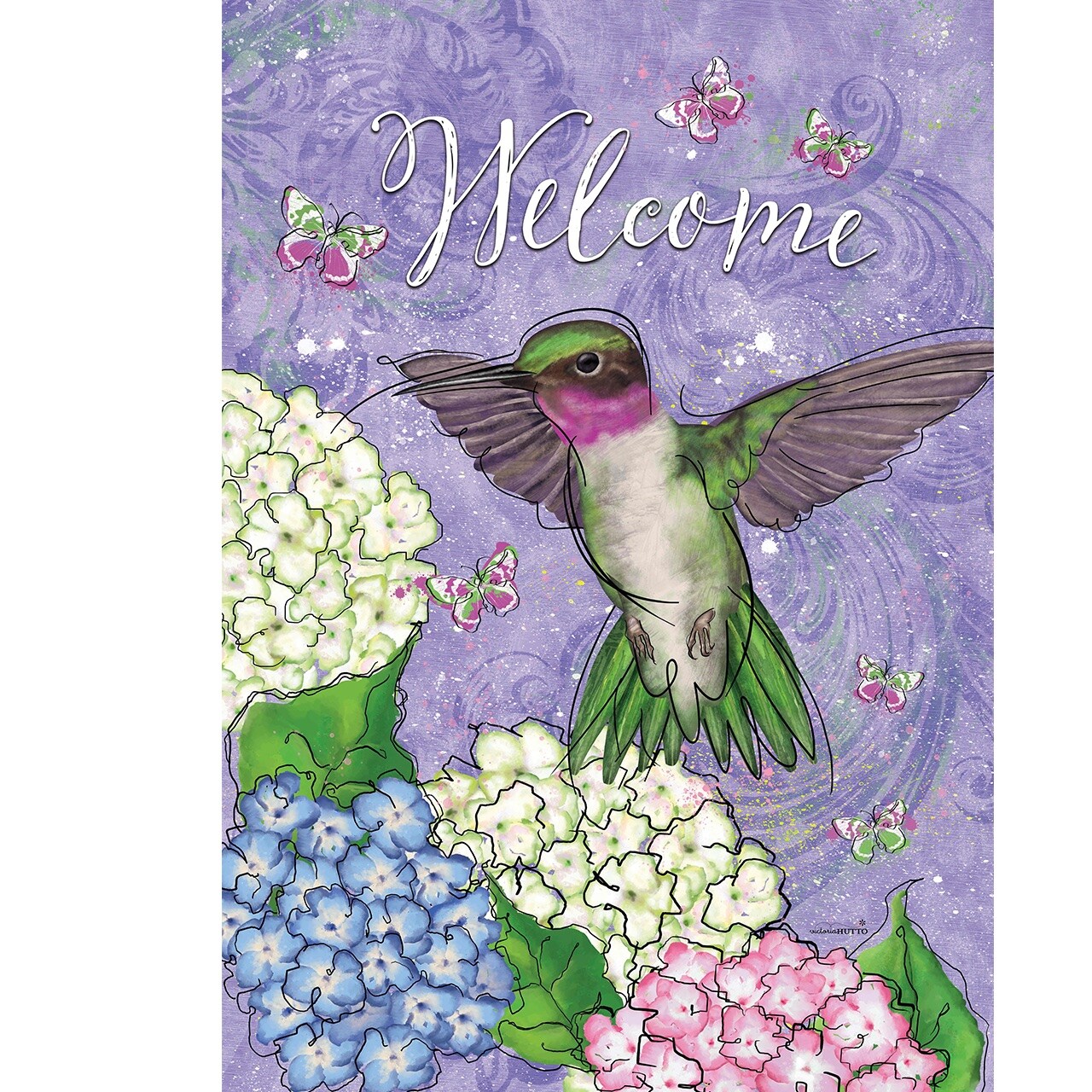 Hummingbird and Hydrangea Garden Flag