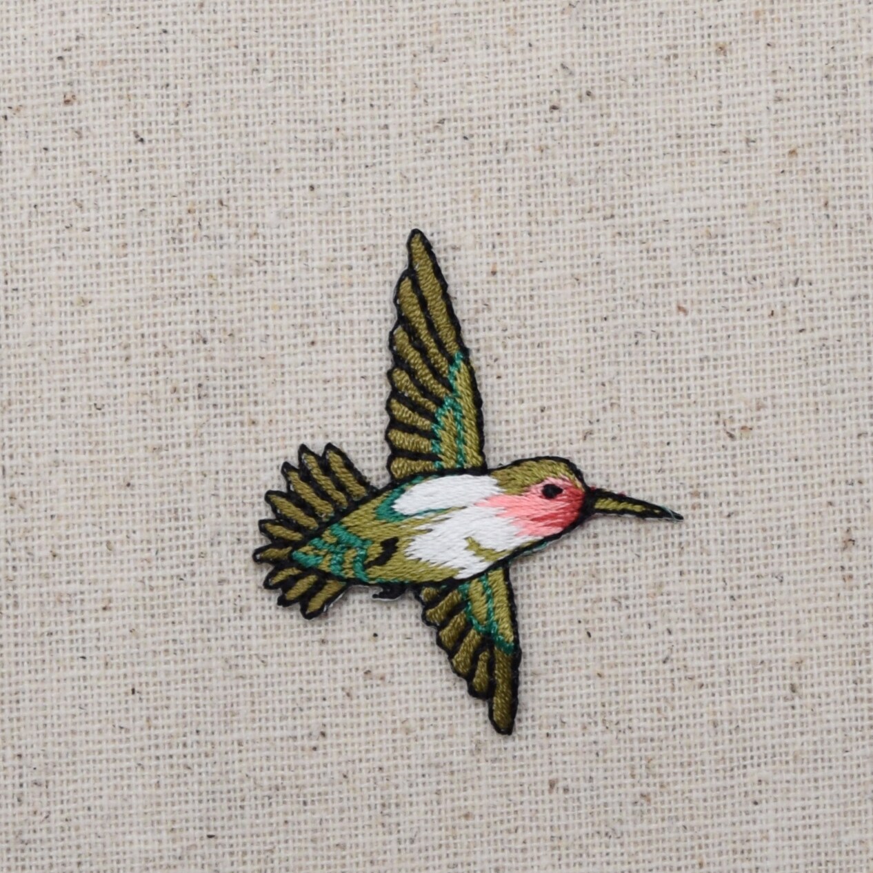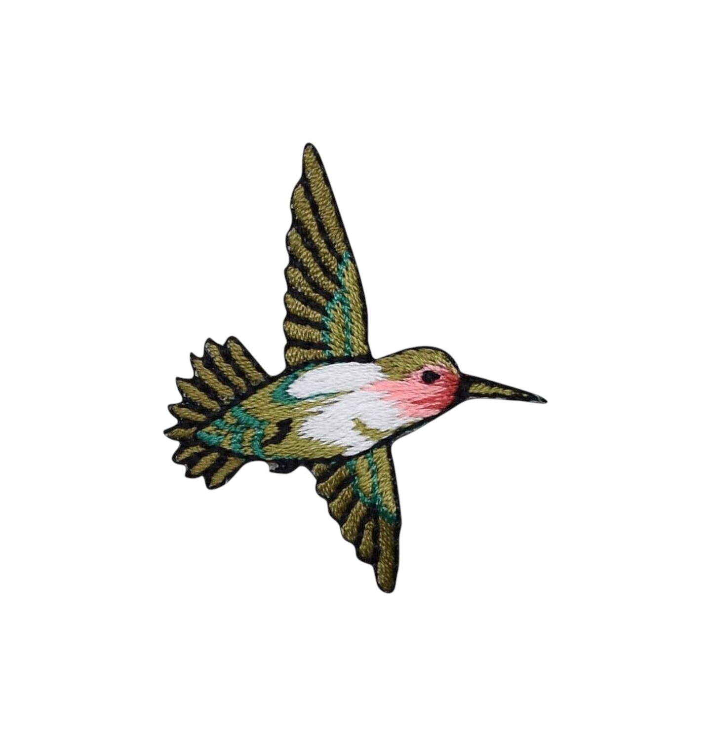 Hummingbird, Flying Right, Birds, Embroidered, Iron on Patch