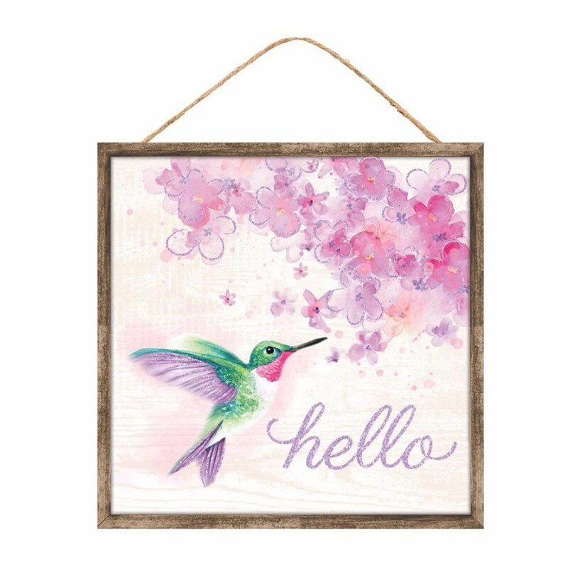 Hummingbird "Hello" 10" Sign for Wreath Accents, Door / Wall Hanger, Crafts and Decoration - Pink, Purple, White - Spring, Easter, Summer