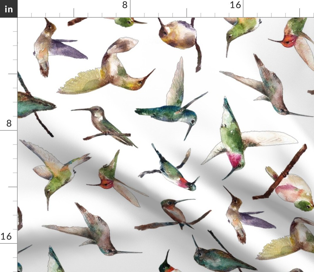 Hummingbirds All Shapes Watercolor Birds Bird Print Big Custom Printed Fabric by Spoonflower Various Fabrics by the Yard or Fat Quarter
