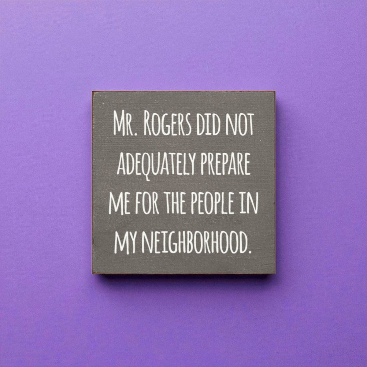 Humorous Neighborhood Saying Wood Sign Rustic Pine Shelf or Wall