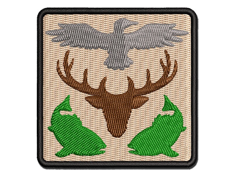 Hunter Deer Fish Duck Hunting Fishing Multi-Color Embroidered Iron-On or Hook & Loop Patch Applique