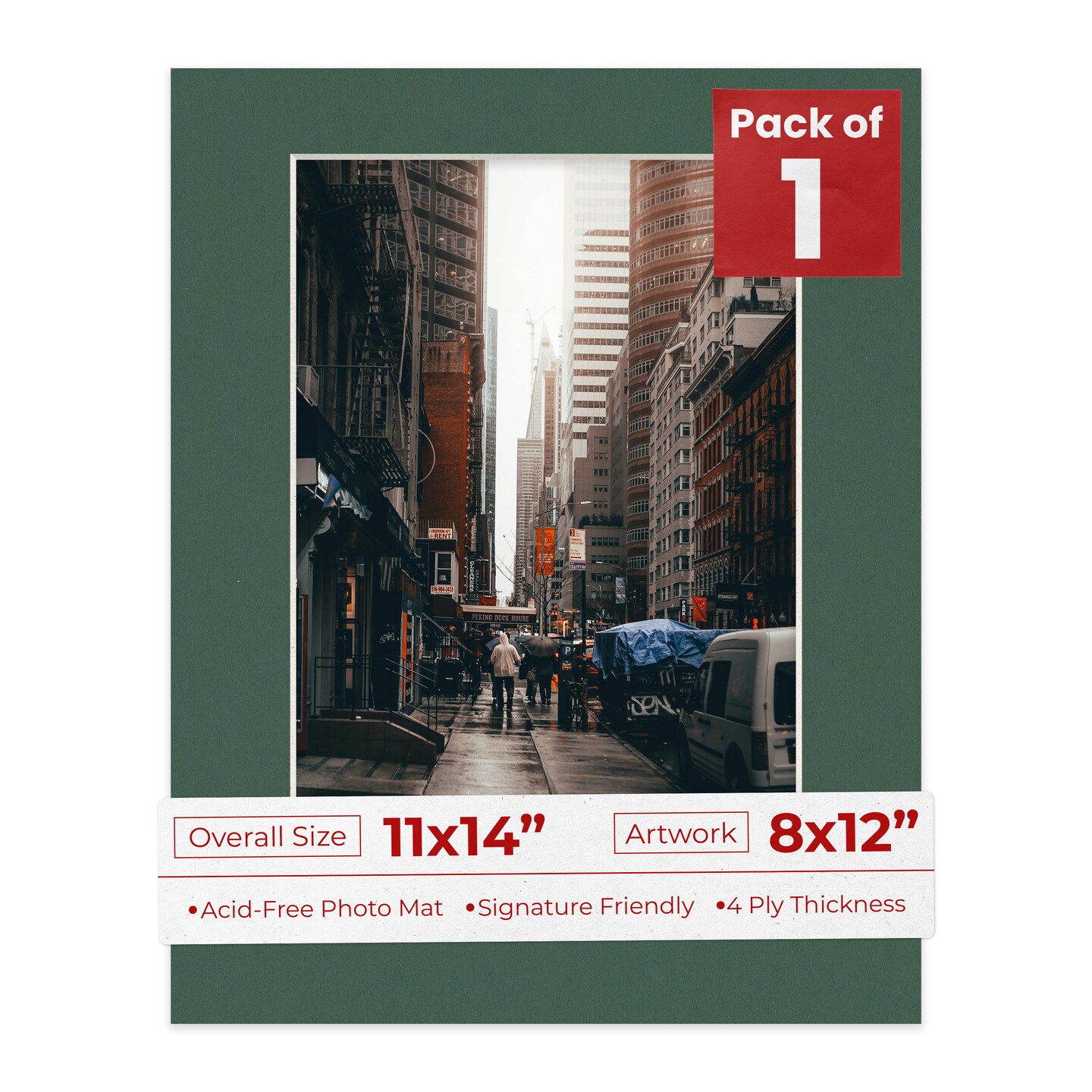 Hunter Green Mat Board for 11x14 Frames - Fits 8x12 Photos