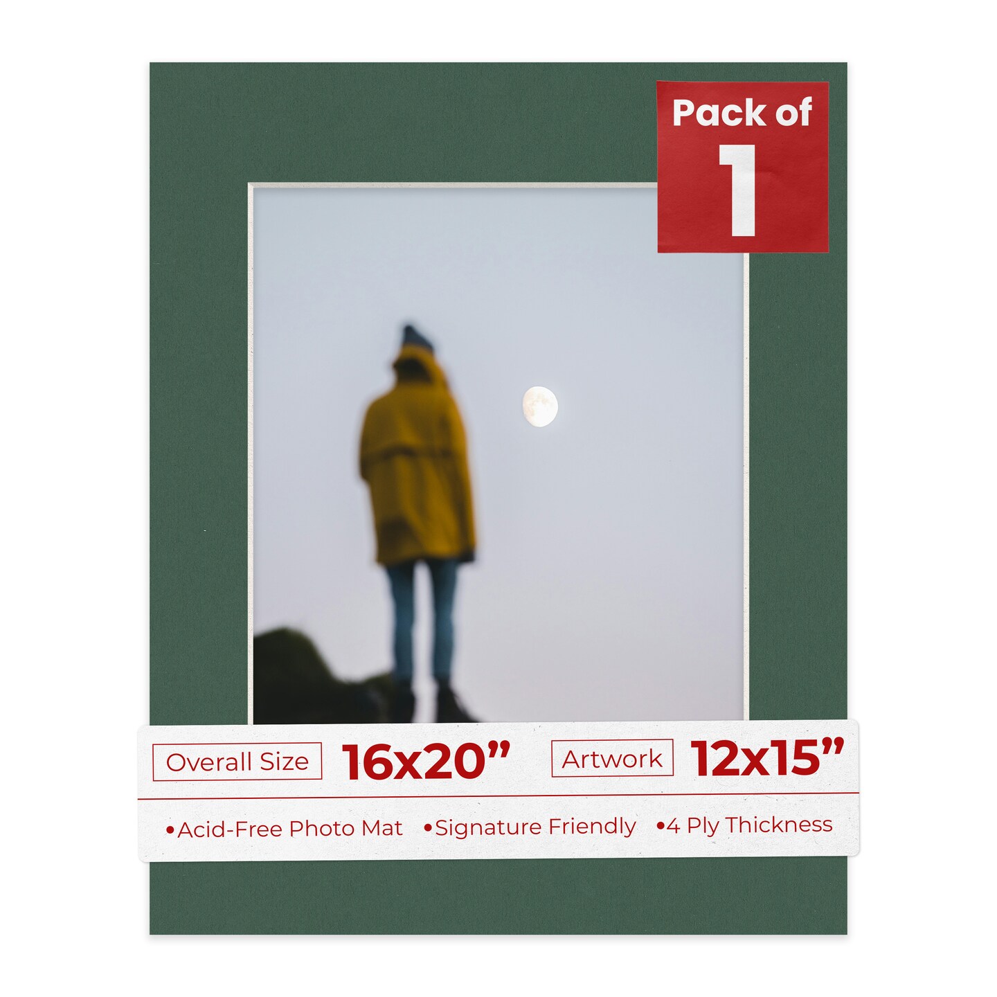 Hunter Green Mat Board for 16x20 Frames - Fits 12x15 Photos
