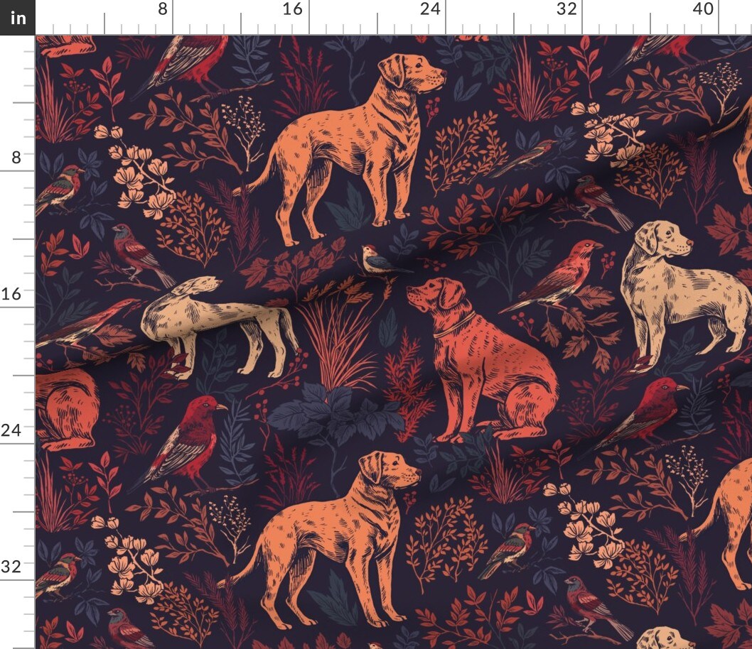 Hunting Dogs Wildlife Autumnal Nature Woodland Botanical Birds Sporting Dogs Large Scale Forest Hunting Earth Tones Animals Dogs Leaves Fall Custom Printed Fabric by Spoonflower Various Fabrics by the Yard or Fat Quarter