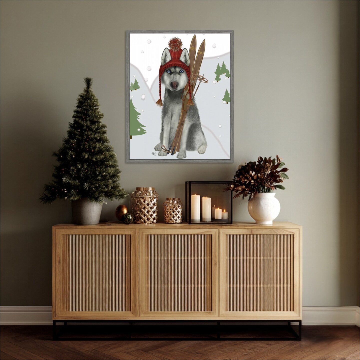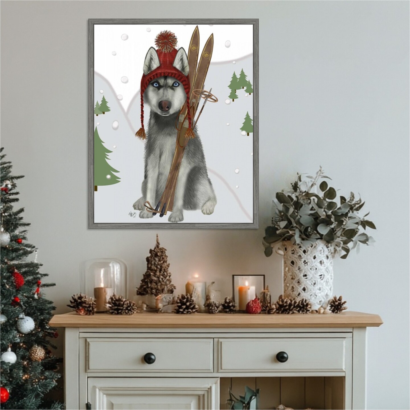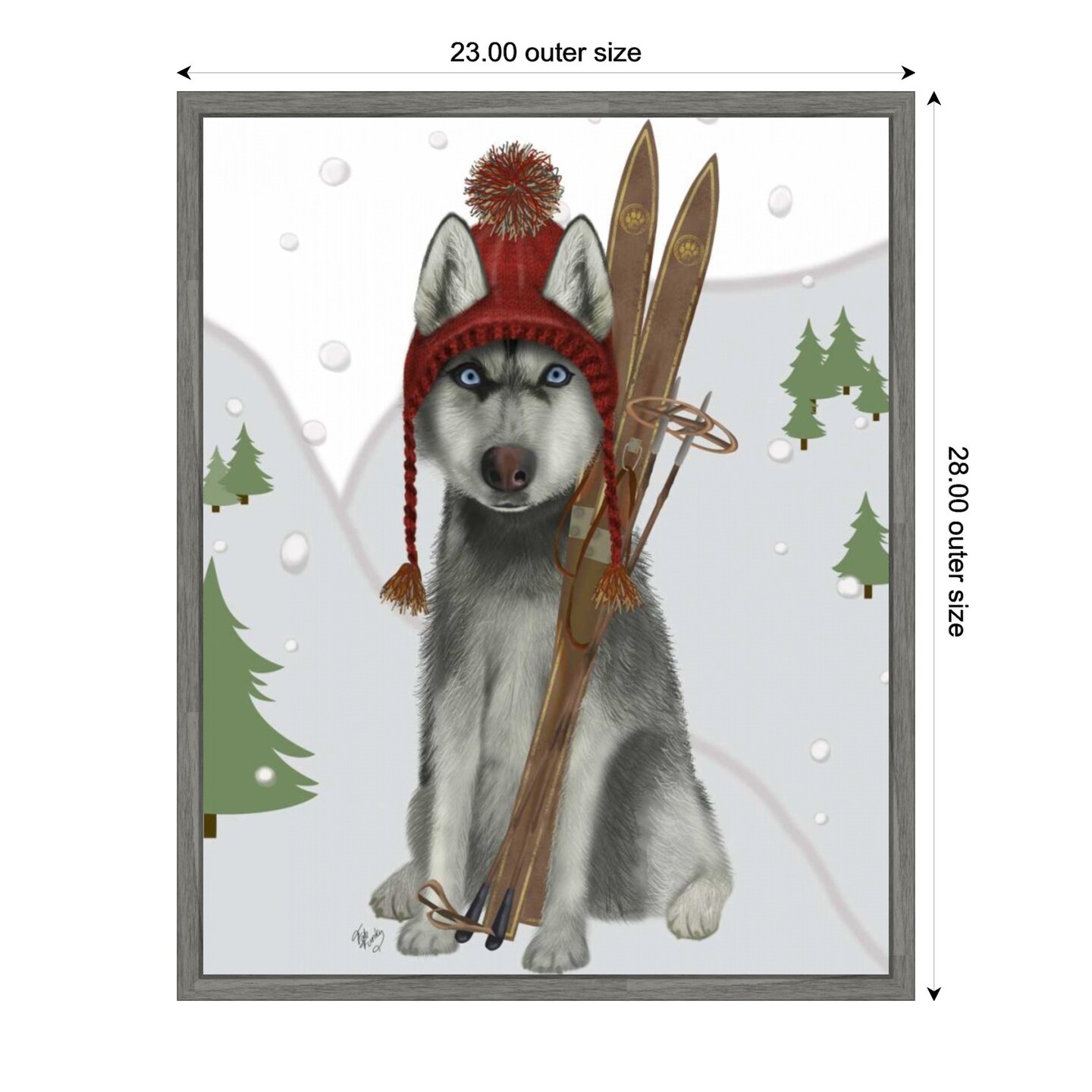 Husky Skiing by Fab Funky 23-in. W x 28-in. H. Canvas Wall Art Print Framed
