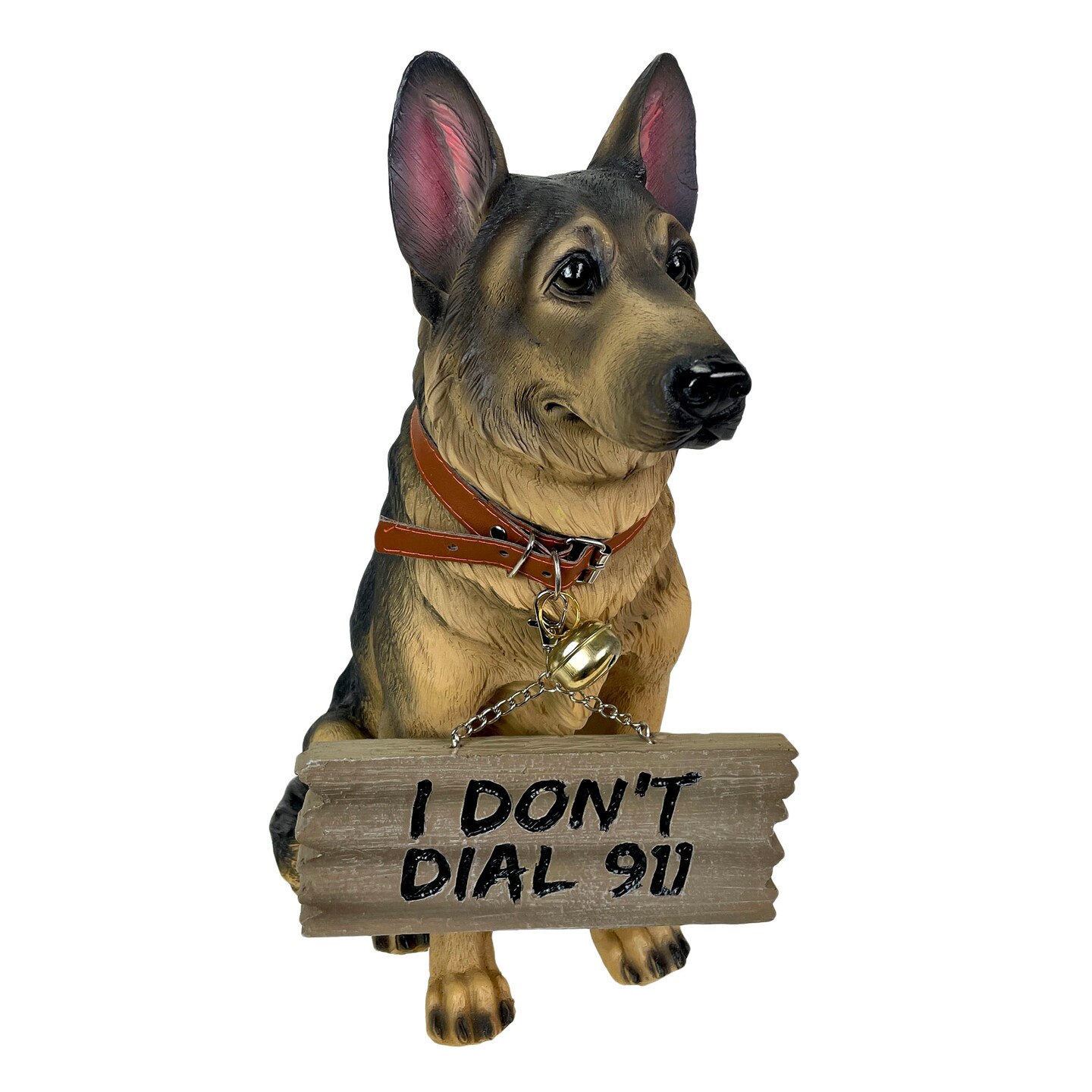 I Don't Dial 911 German Shepherd Guard Dog Warning Statue