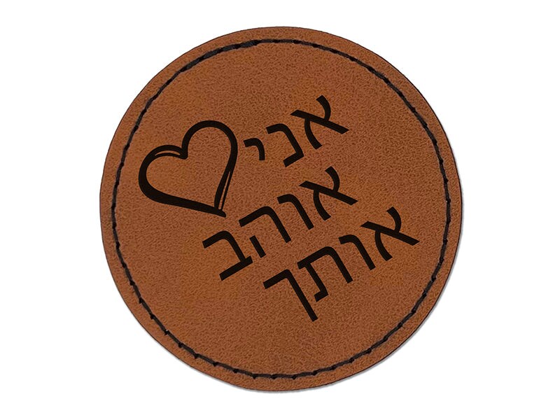 I Love You in Hebrew Hearts Round Iron-On Engraved Faux Leather Patch Applique - 2.5"