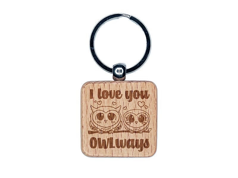 I Love You OWLways Always Owl Couple Anniversary Engraved Wood Square Keychain Tag Charm