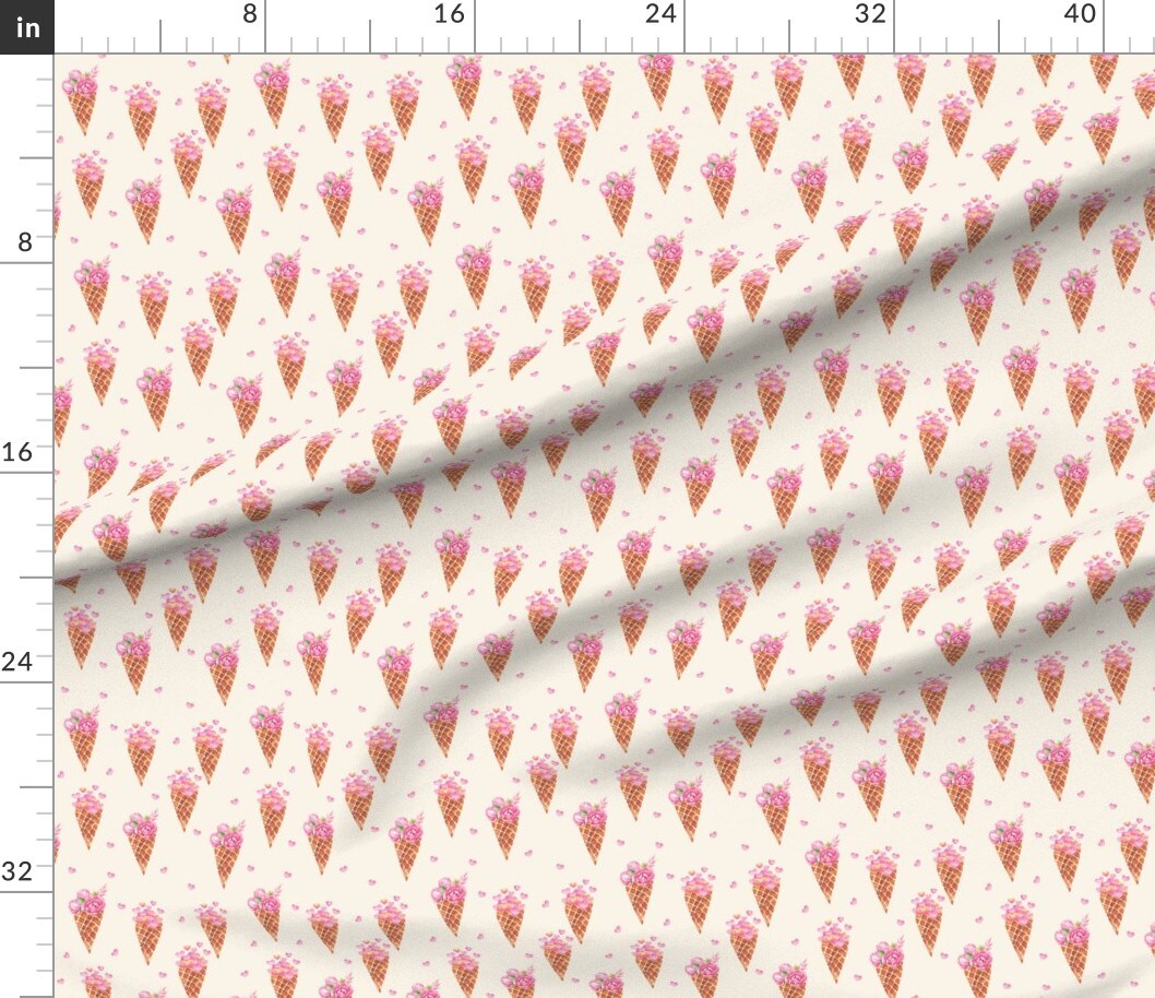Ice Cream Watercolor Summer Sweet Treat Pink Brown Strawberry Hearts Custom Printed Fabric by Spoonflower Various Fabrics by the Yard or Fat Quarter