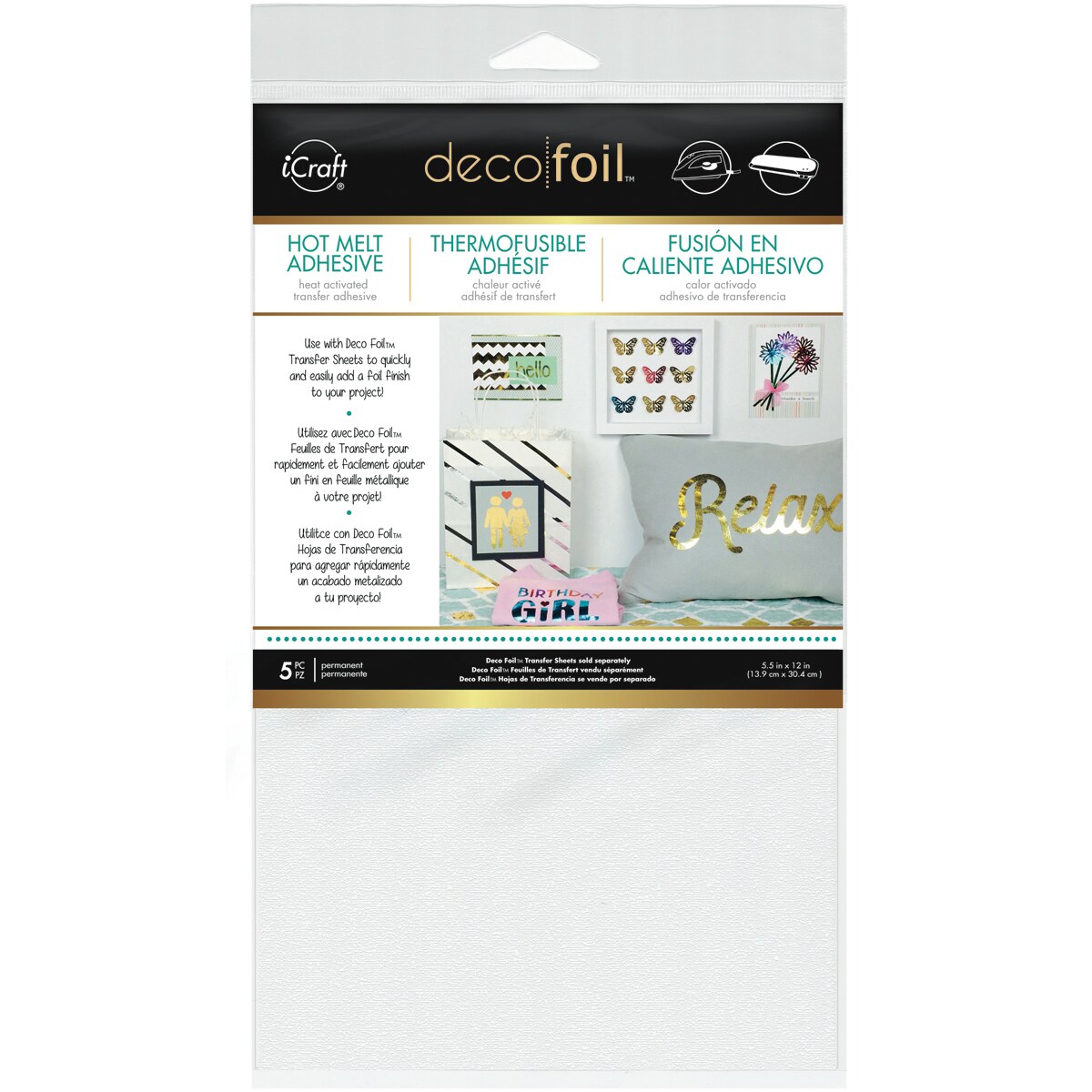 iCraft Deco Foil Iron-On Transfer Sheet 5.5"X12"-5/Pkg