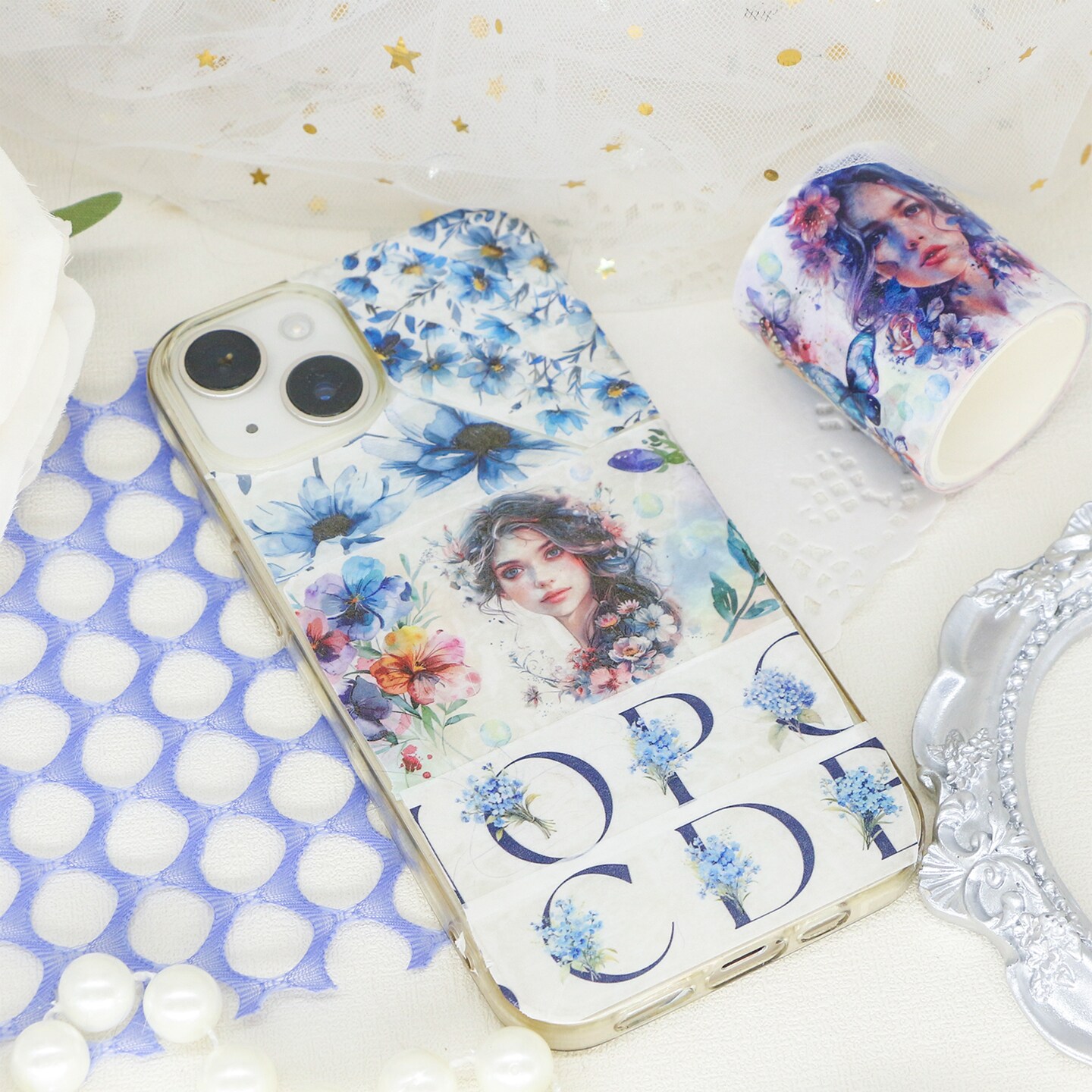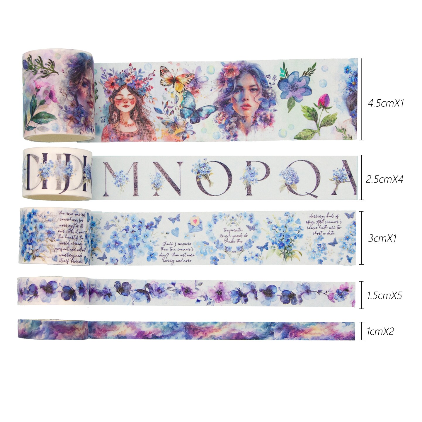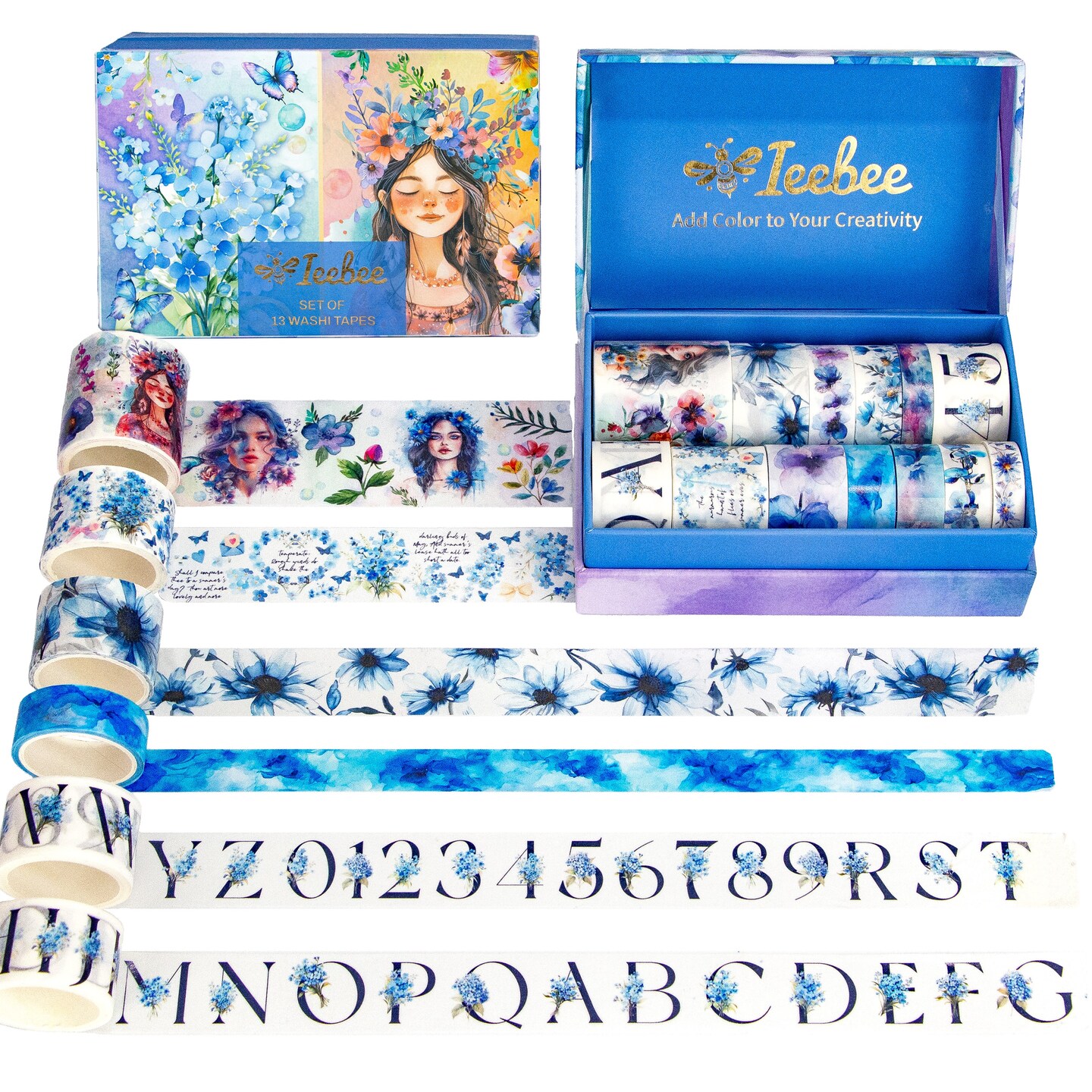 Ieebee Washi Tape Set 12/Rolls-Floral Whispers: Blue Garden