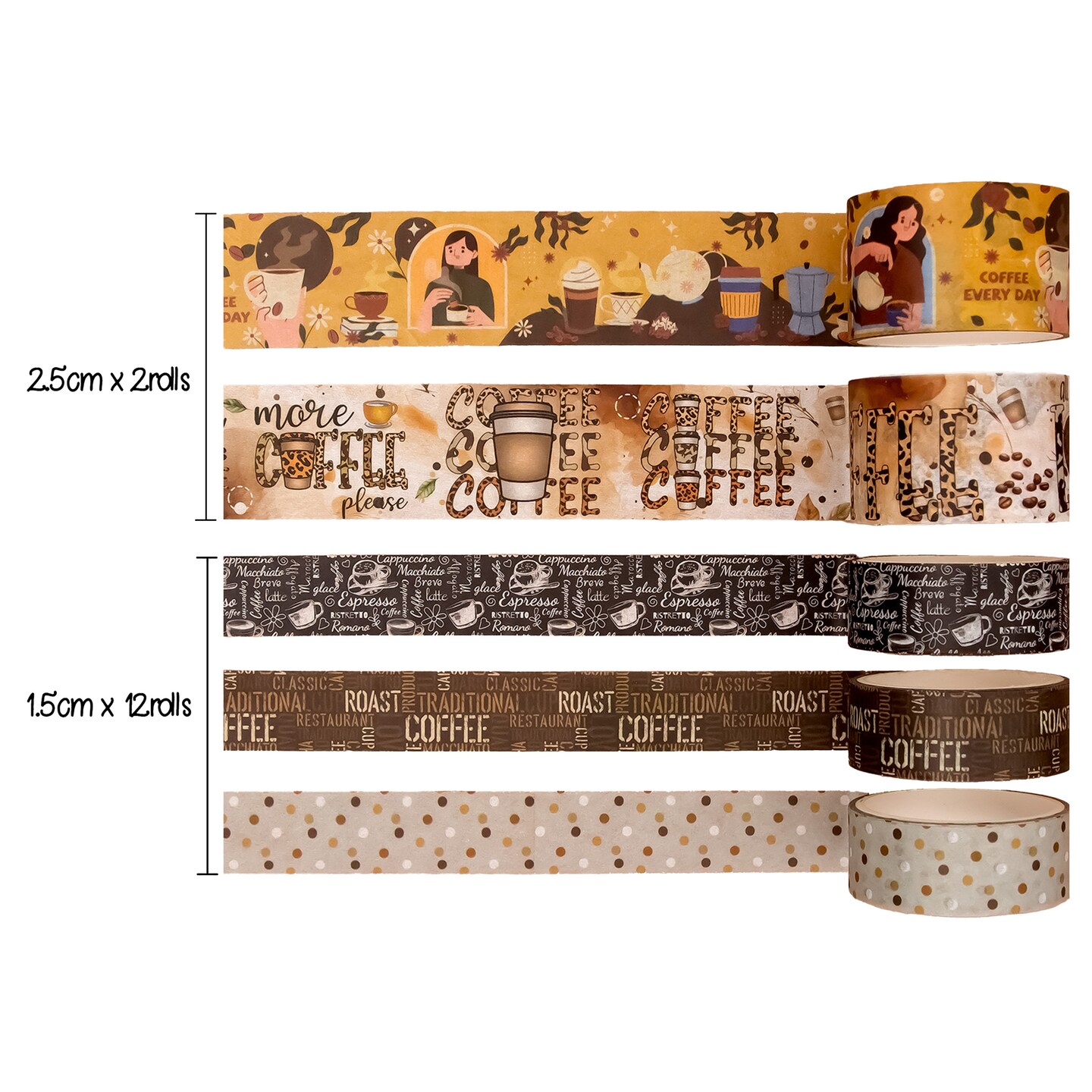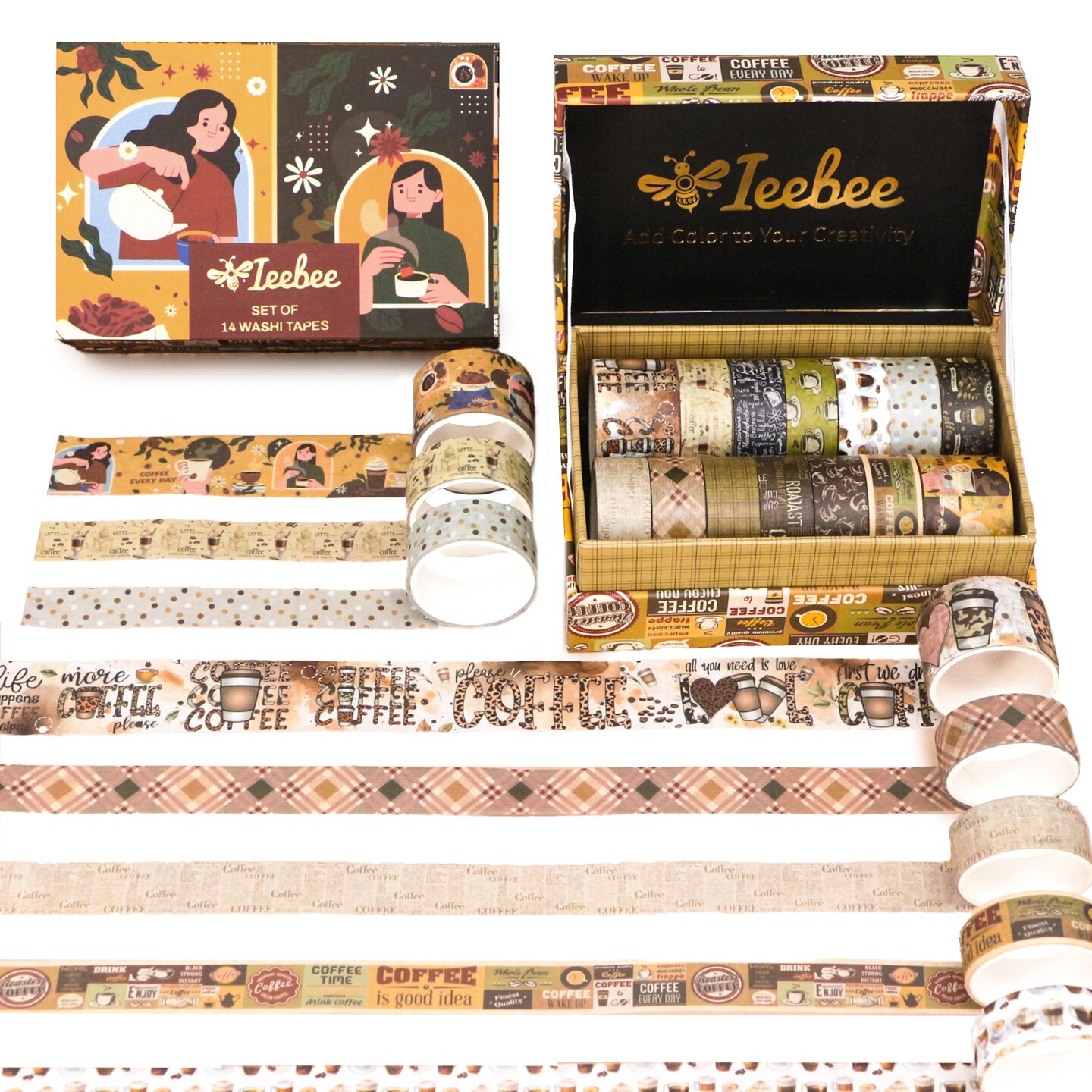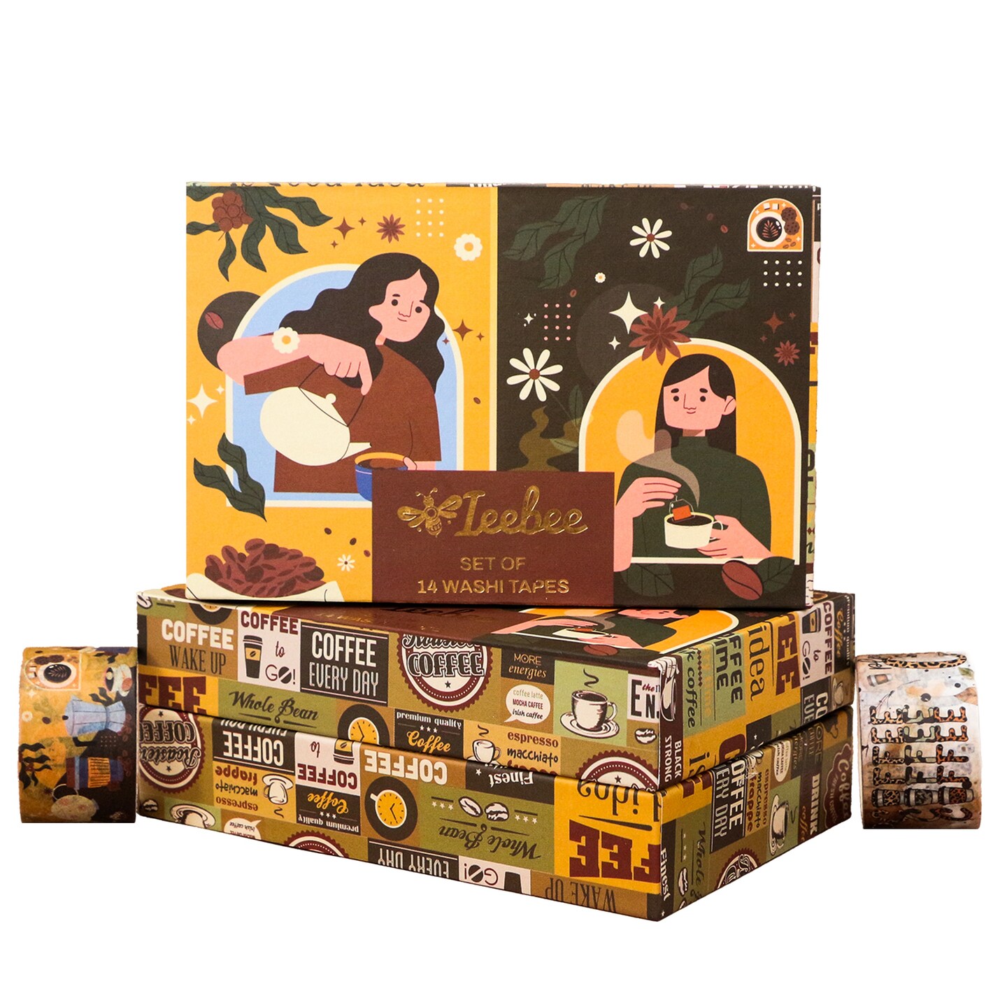 Ieebee Washi Tape Set 14/Rolls-Coffee Chronicles