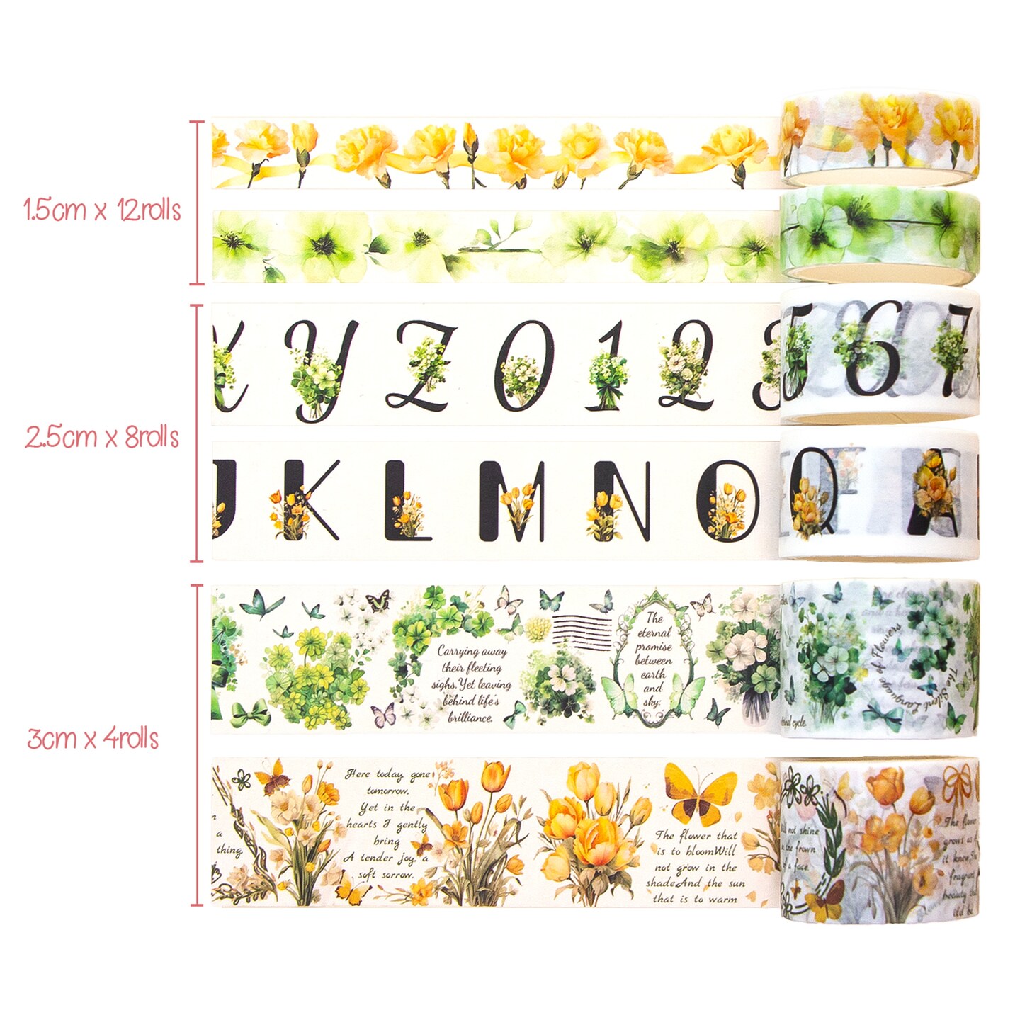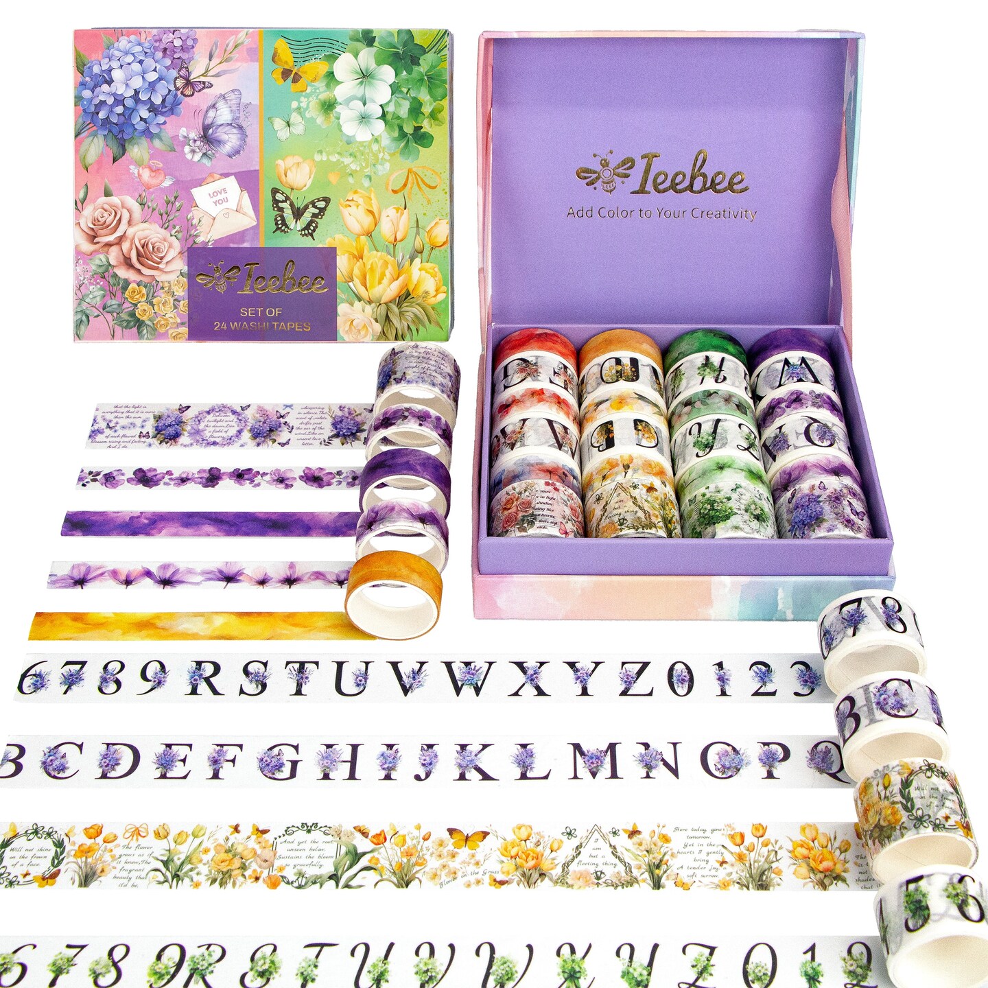 Ieebee Washi Tape Set 24/Rolls-Floral Whispers: Alphabet Garden