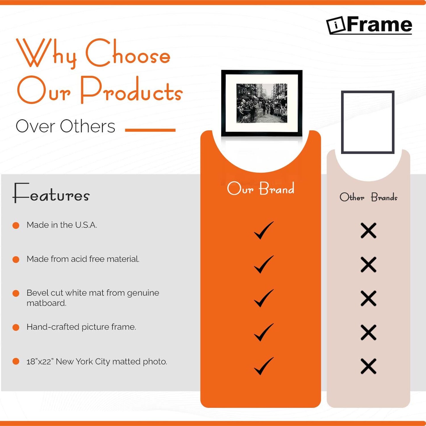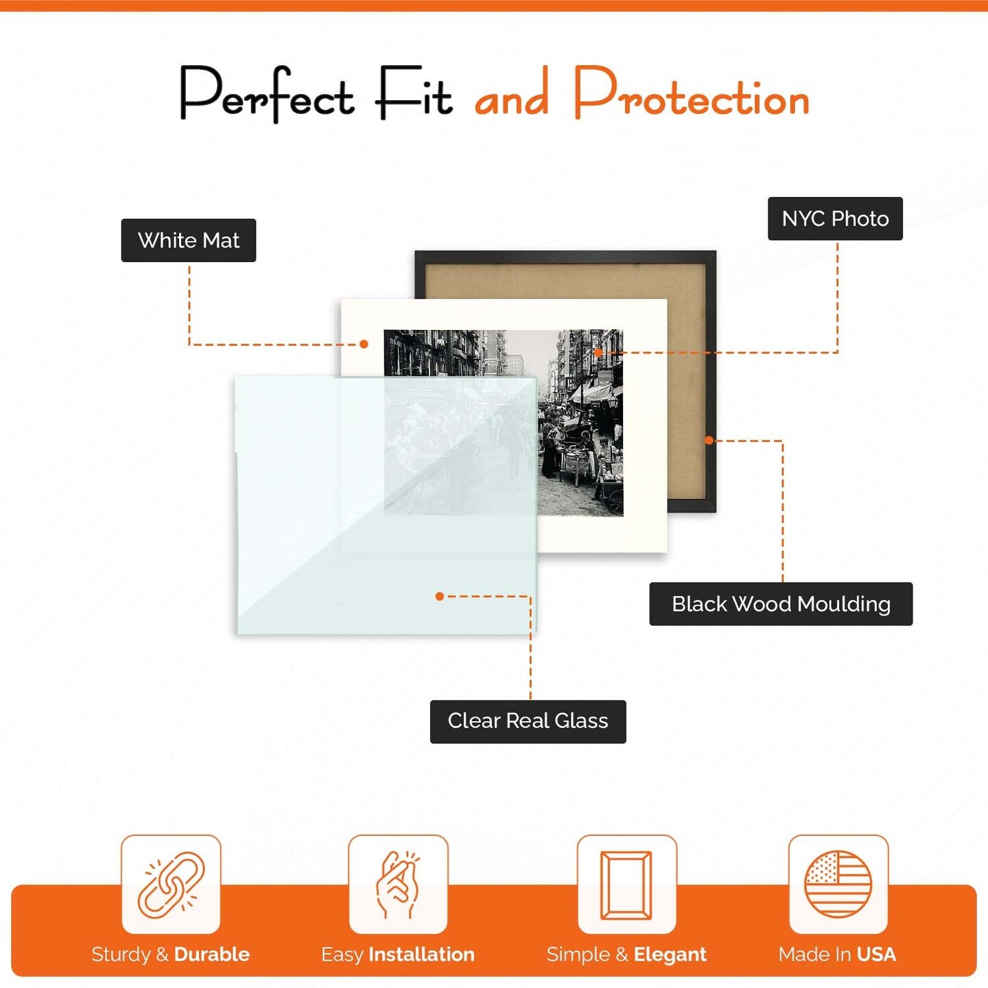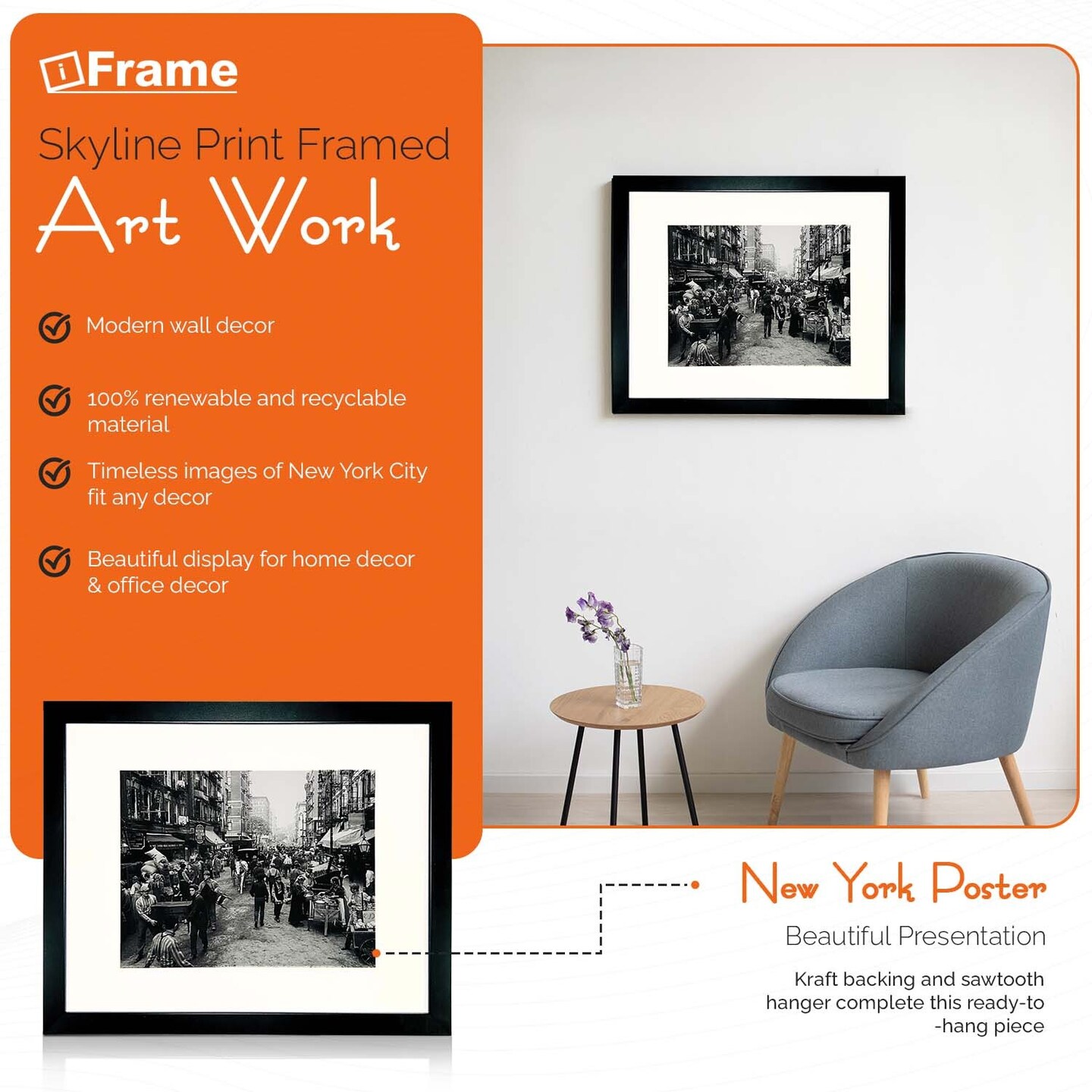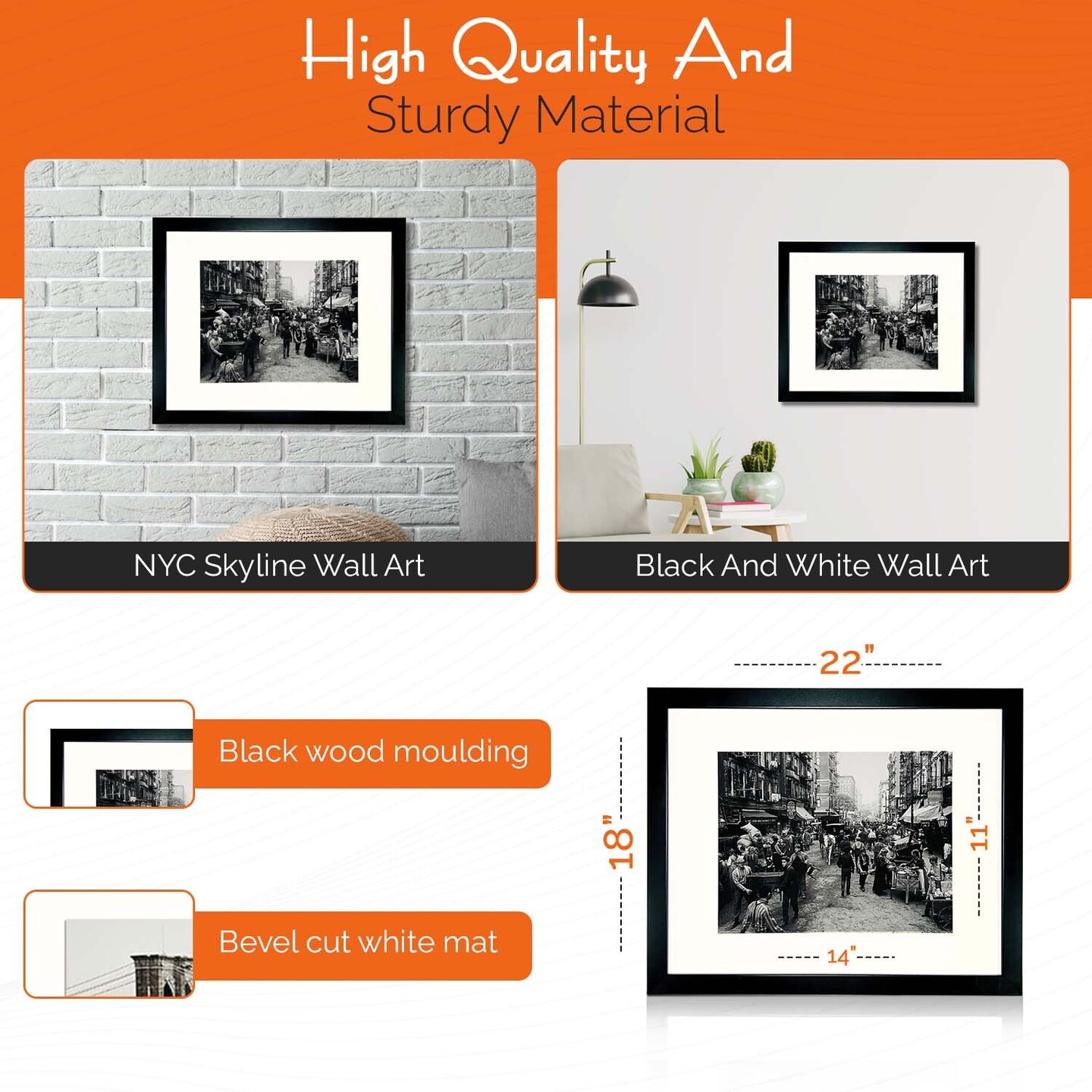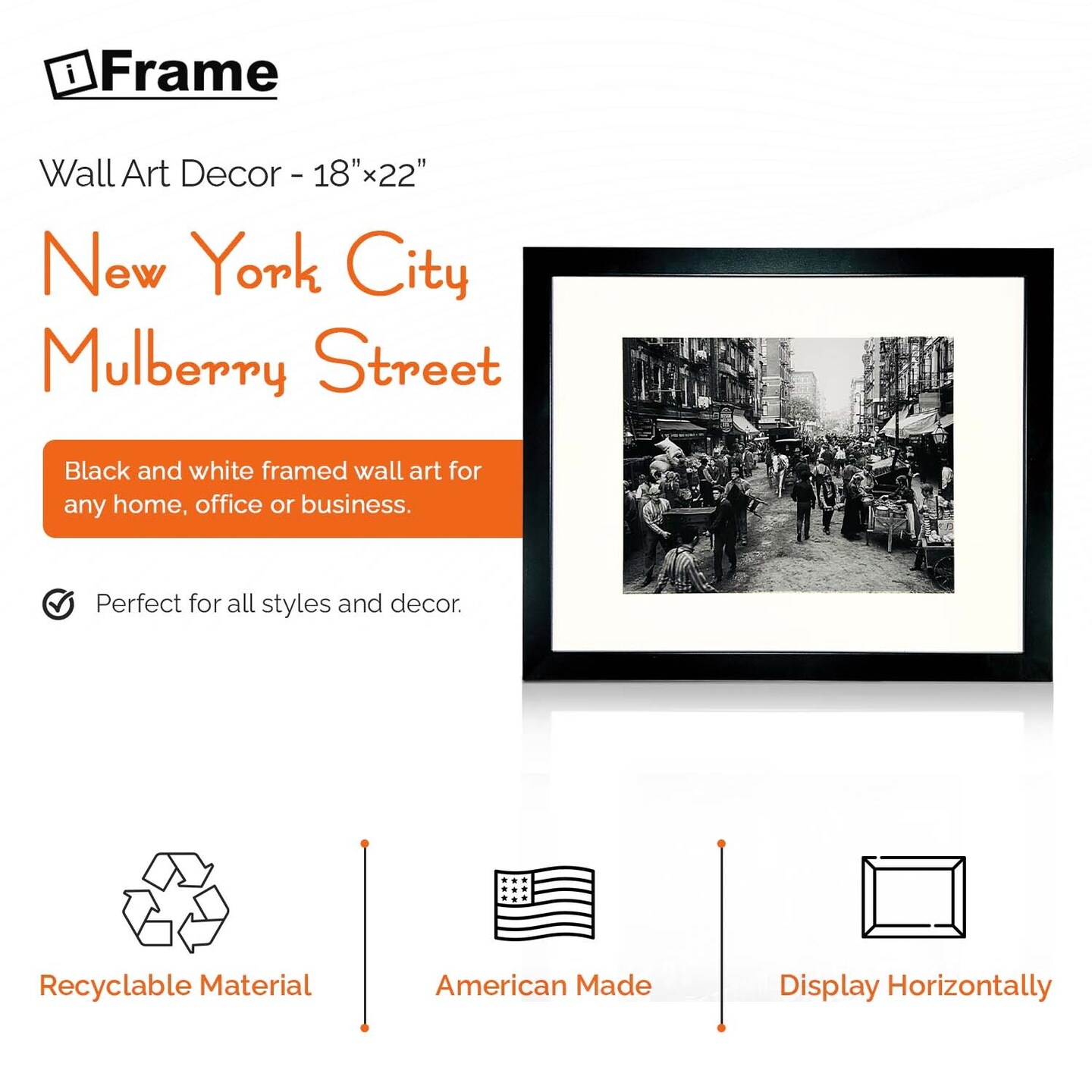 iFrame 18” x 22” Black Framed New York City Mulberry Street Skyline Print Framed Art Work For Wall Decor With Photo Mat | NYC Skyline Wall Art | Black And White Picture Wall Art Decor
