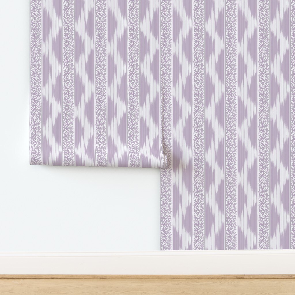 Ikat Stripe Zig Zag Traditional Maximalist Purple Abstract Boho Eclectic Dorm Room Teen Custom Pre-pasted Wallpaper by Spoonflower Pre-Pasted Wallpaper 2FT Wide
