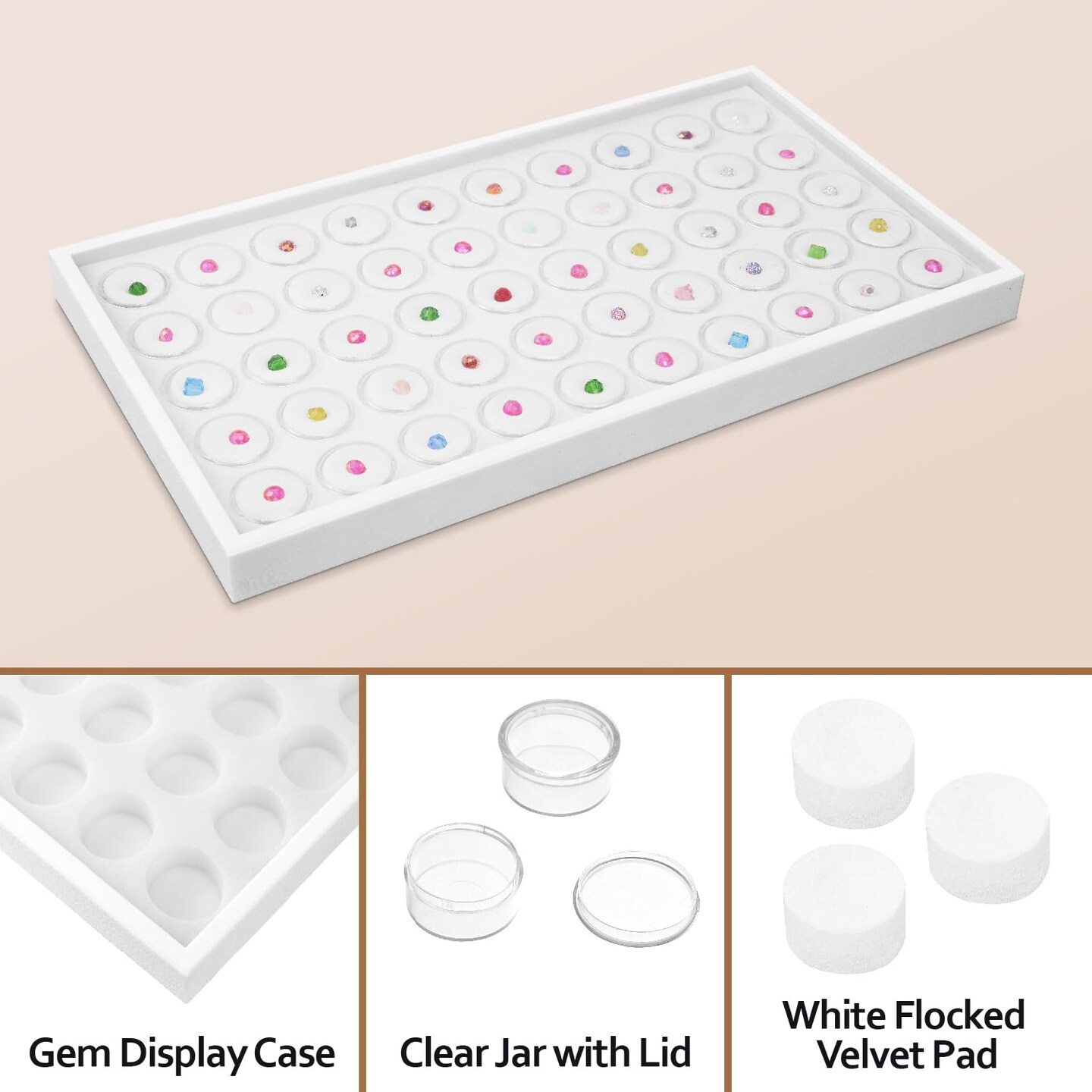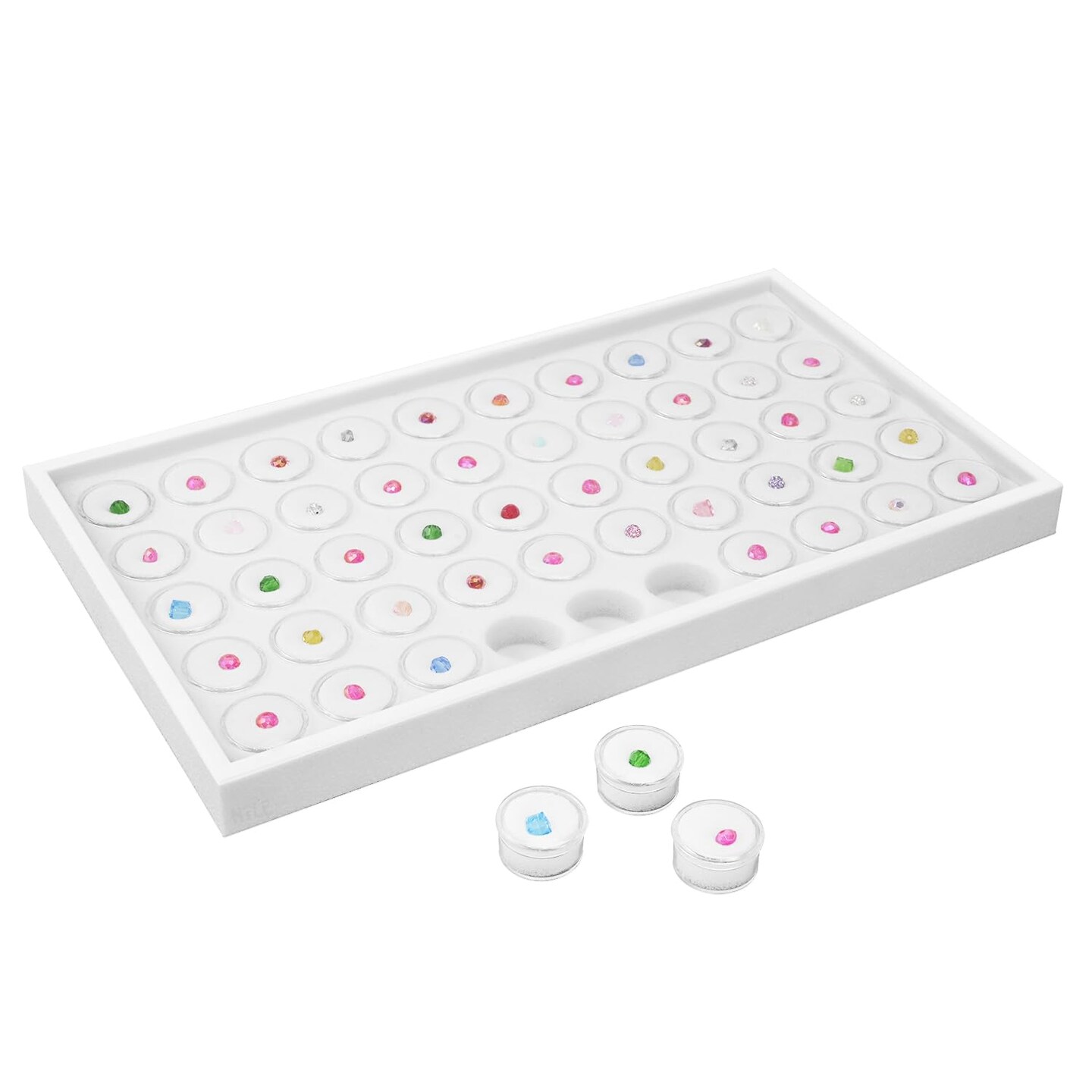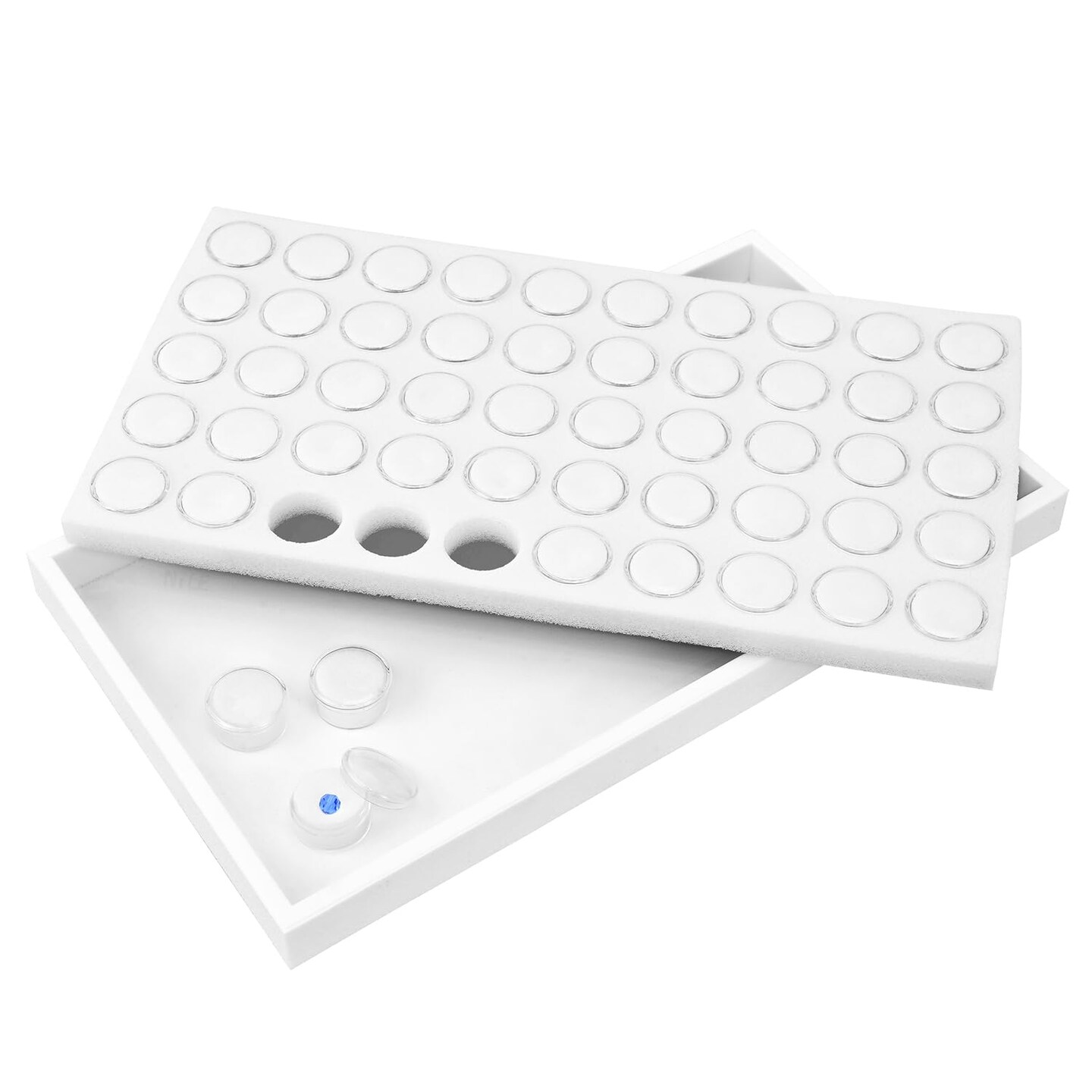 Ikee Design 50 White Foam Gem and Bead Storage Jars Showcase Stackable Display Tray Storage Box for Collectibles, Home Organization, 14.75 W x 8.25 D x 1 H in