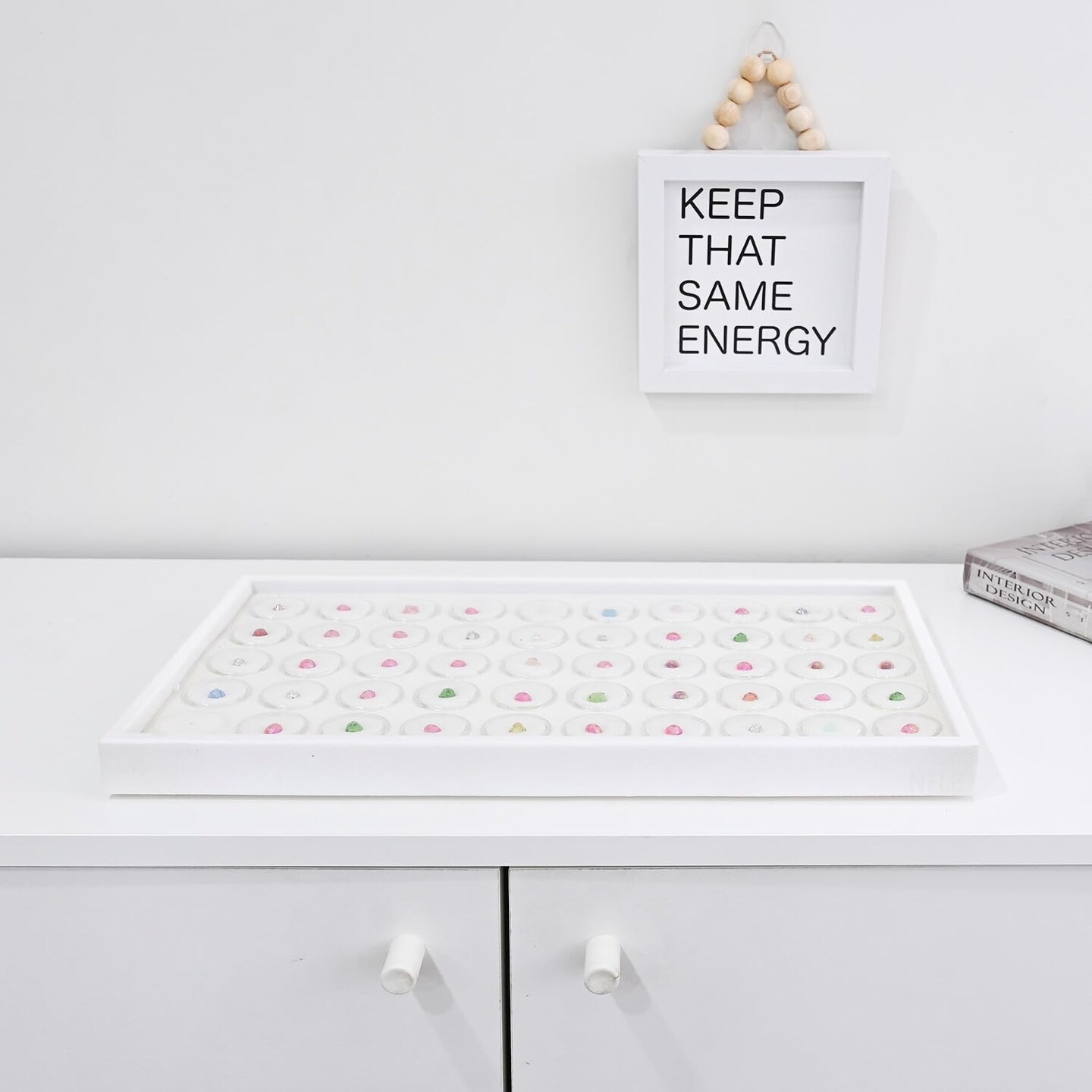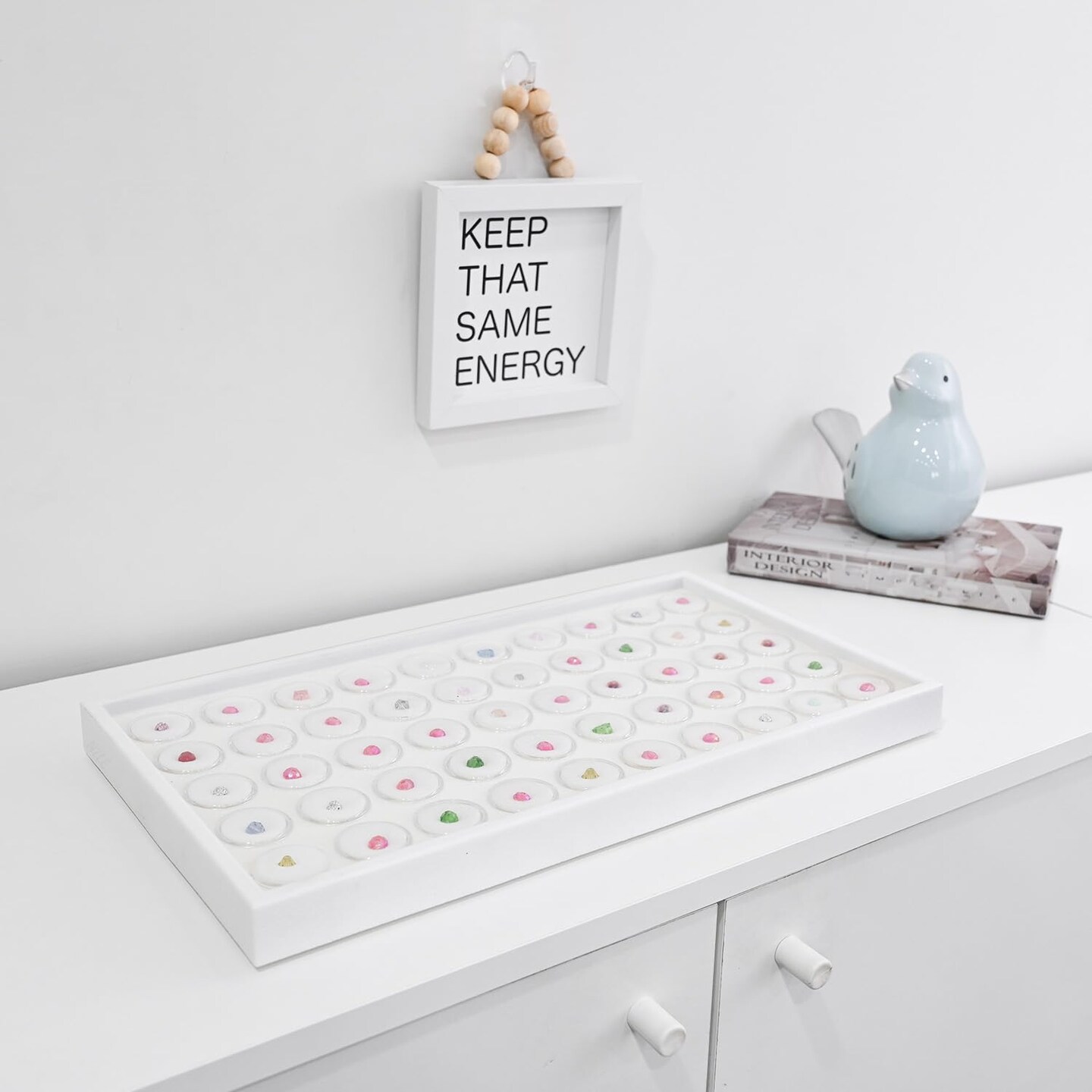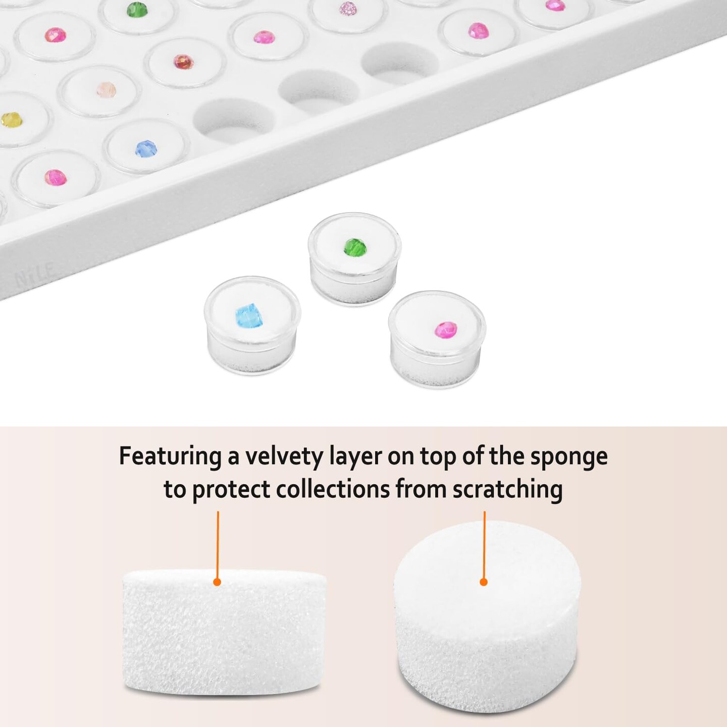 Ikee Design 50 White Foam Gem and Bead Storage Jars Showcase Stackable Display Tray Storage Box for Collectibles, Home Organization, 14.75 W x 8.25 D x 1 H in