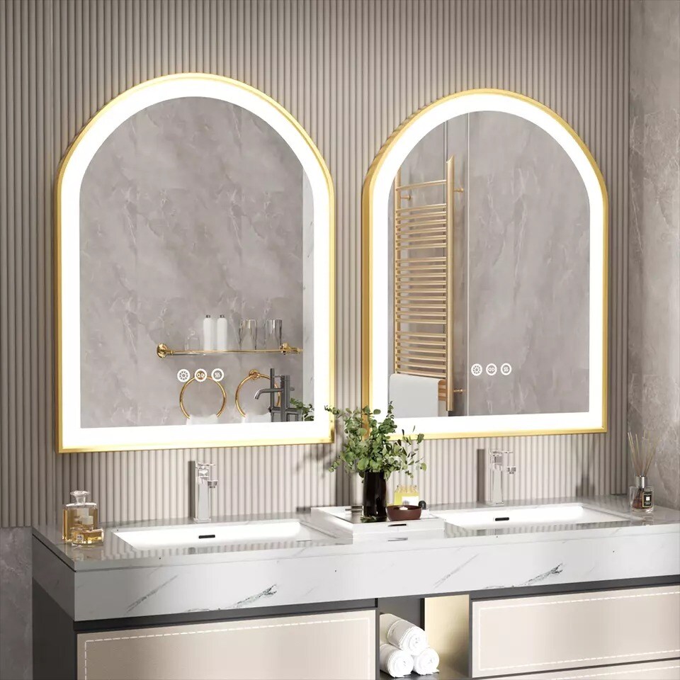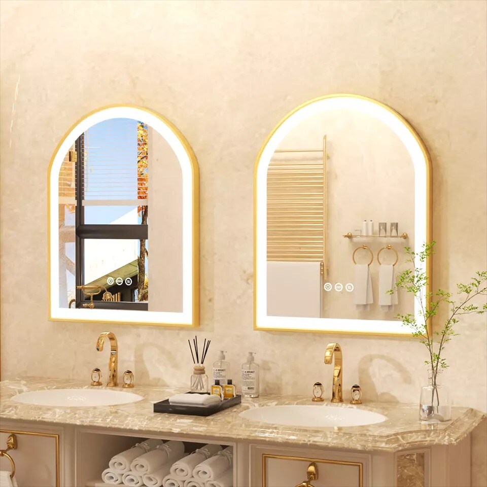 illuminated Gold LED Bathroom Mirror with Aluminum Framed for Vanity Dimmable HD
