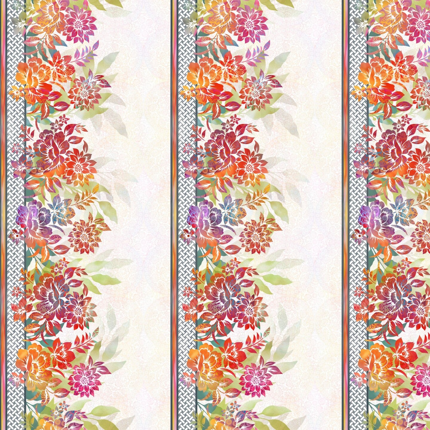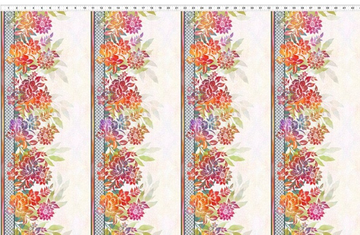 In the Beginnings Garden of Dreams Border Print 100% Cotton By the Yard Floral