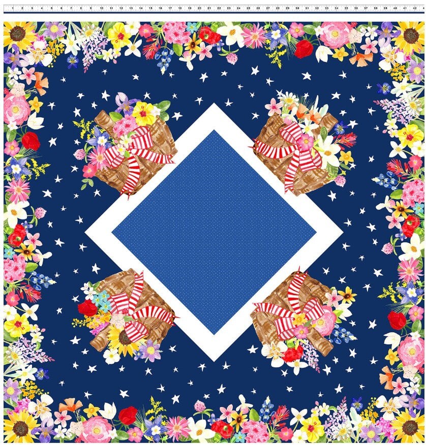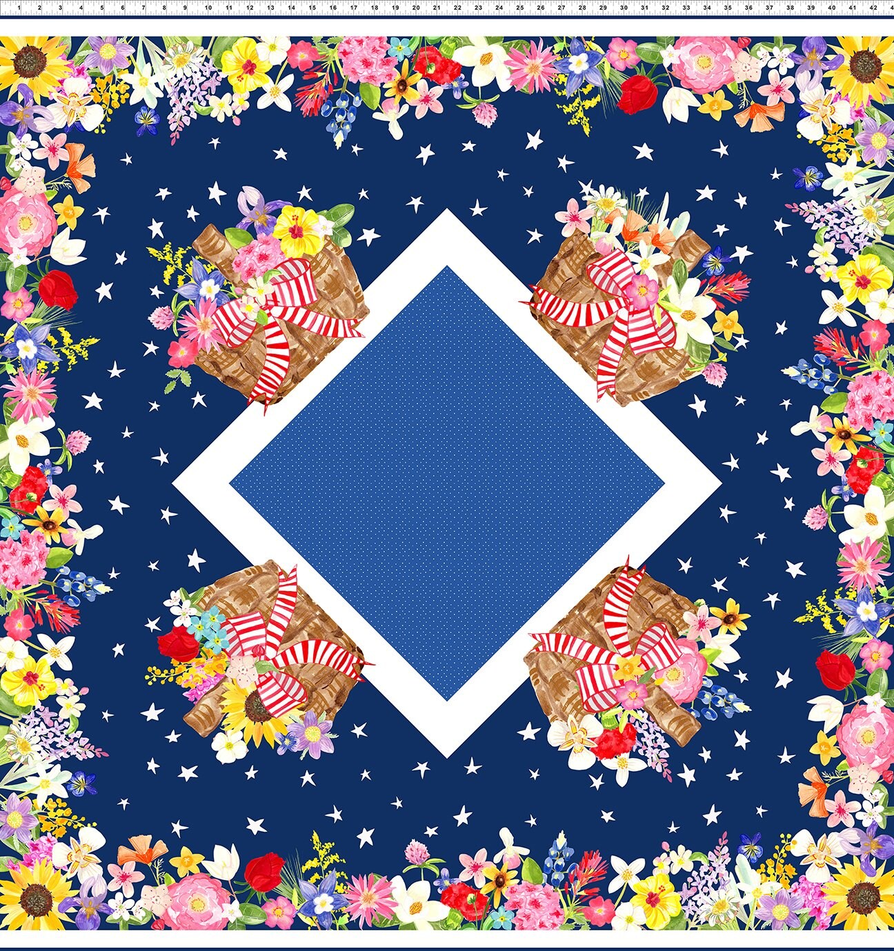 In the Beginnings Patriotic 42 x 42 Natural State Floral Panel 100% Cotton Fabric