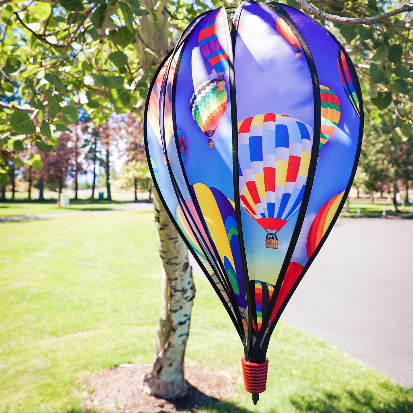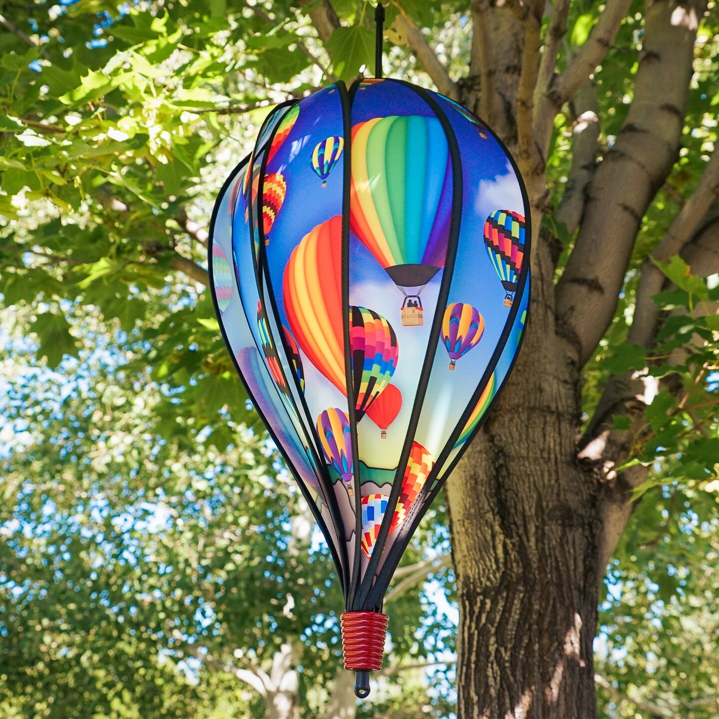 In the Breeze 0971 — Balloon Fest 10-Panel Hot Air Balloon Spinner — Colorful Wind Spinner for Yards, Gardens, Patios