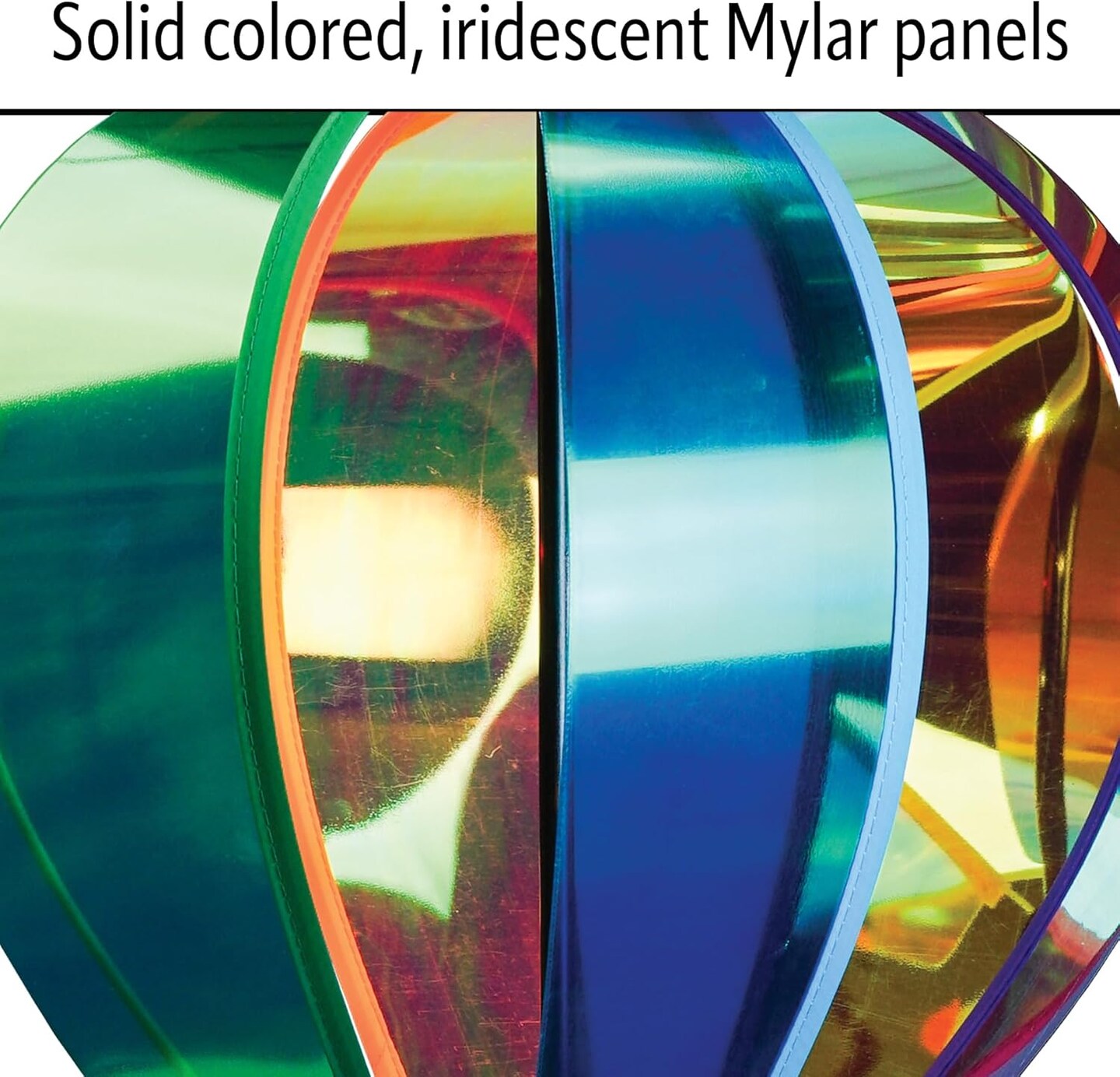 In the Breeze 0973 — Rainbow Iridescent 6-Panel Hot Air Balloon — Vibrant, Shiny Hanging Outdoor Wind Spinner