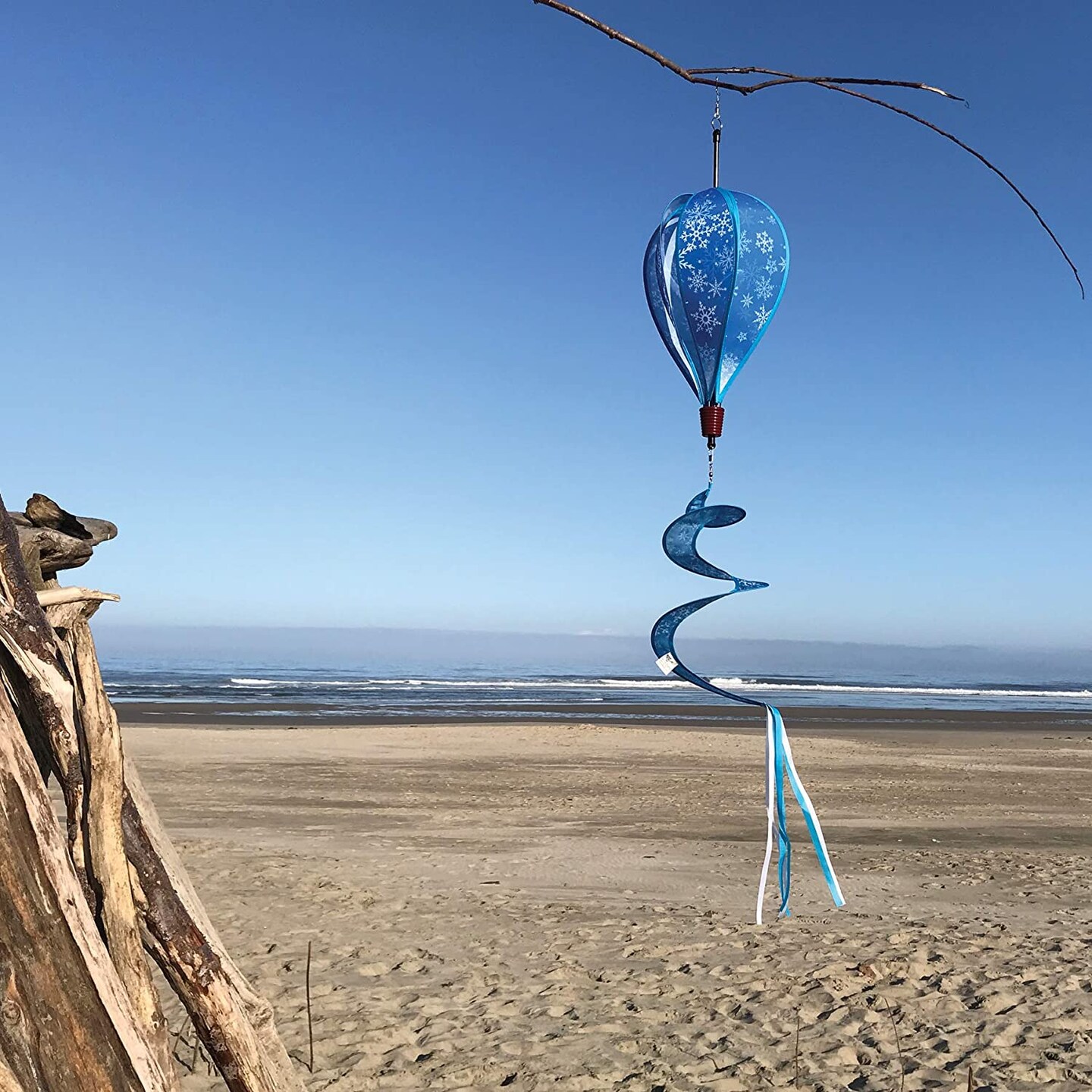 In the Breeze 0989 - Snowflakes Hot Air Balloon - 6 Panel Spinning Balloon - Outdoor Winter Hanging Decoration