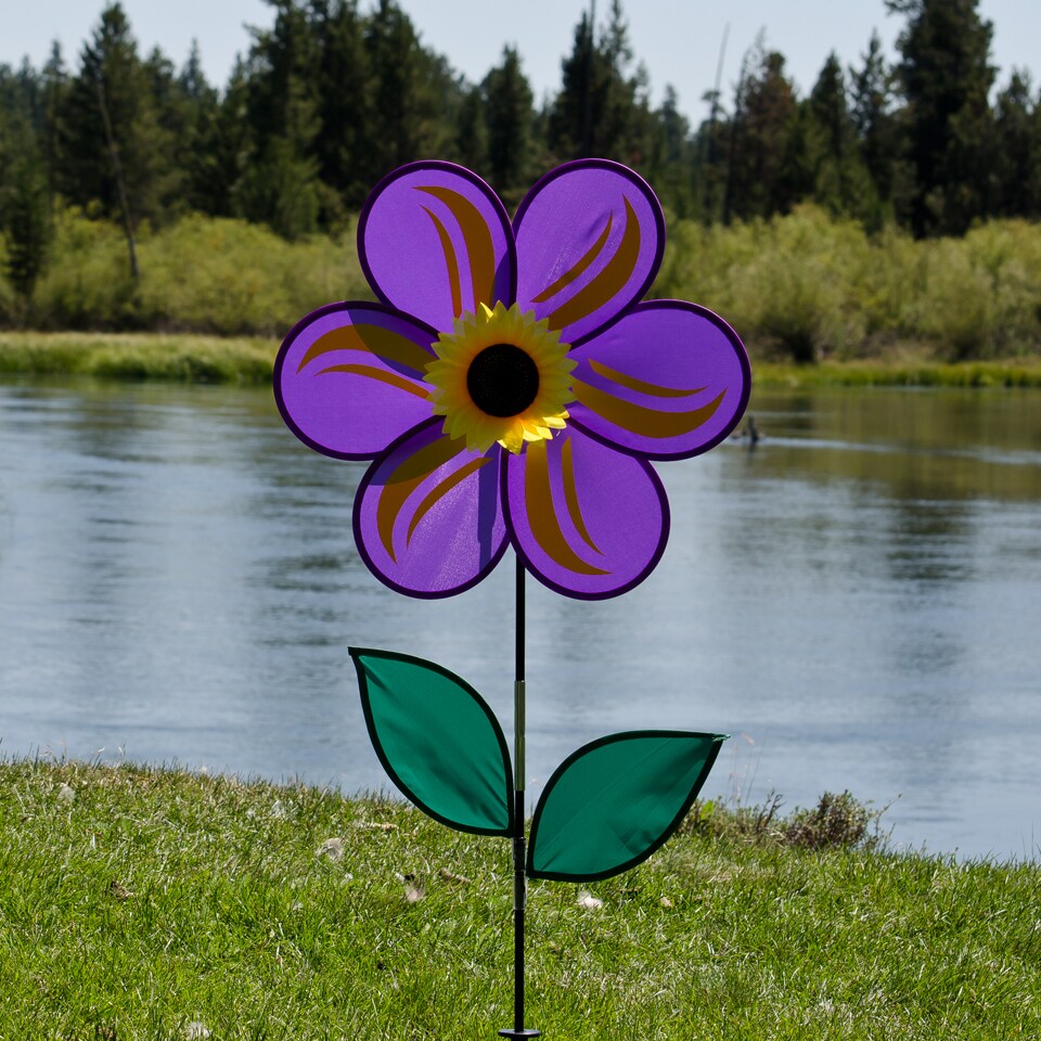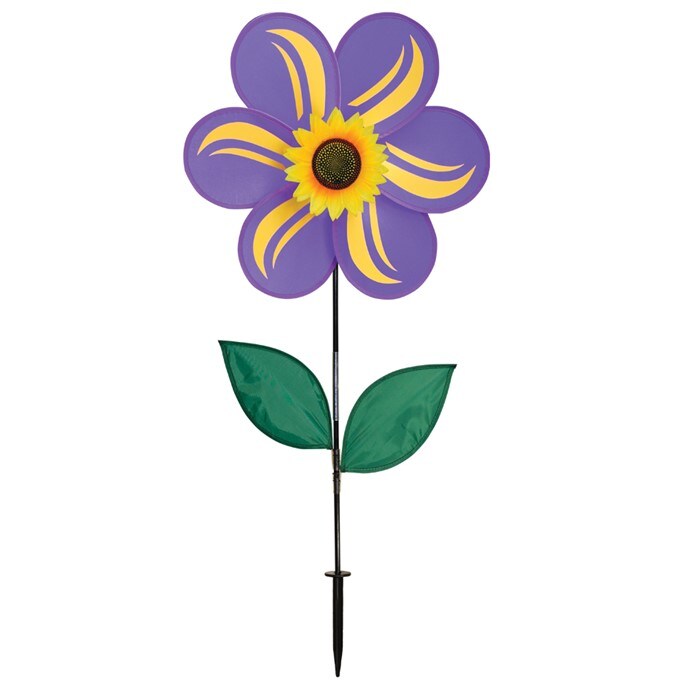 In the Breeze 19 Inch Purple Sunflower Wind Spinner with Leaves - Includes Ground Stake - Colorful Flower for your Yard and Garden